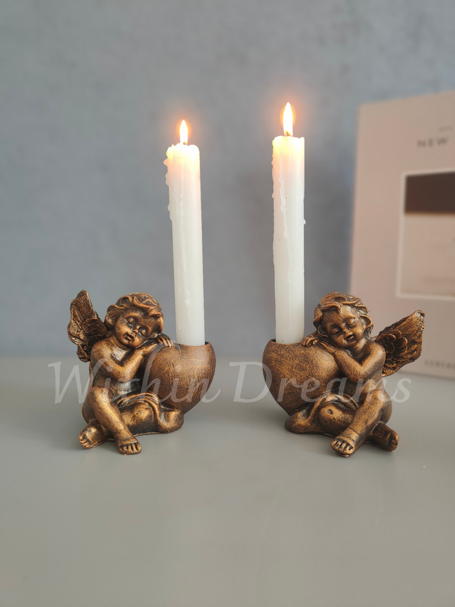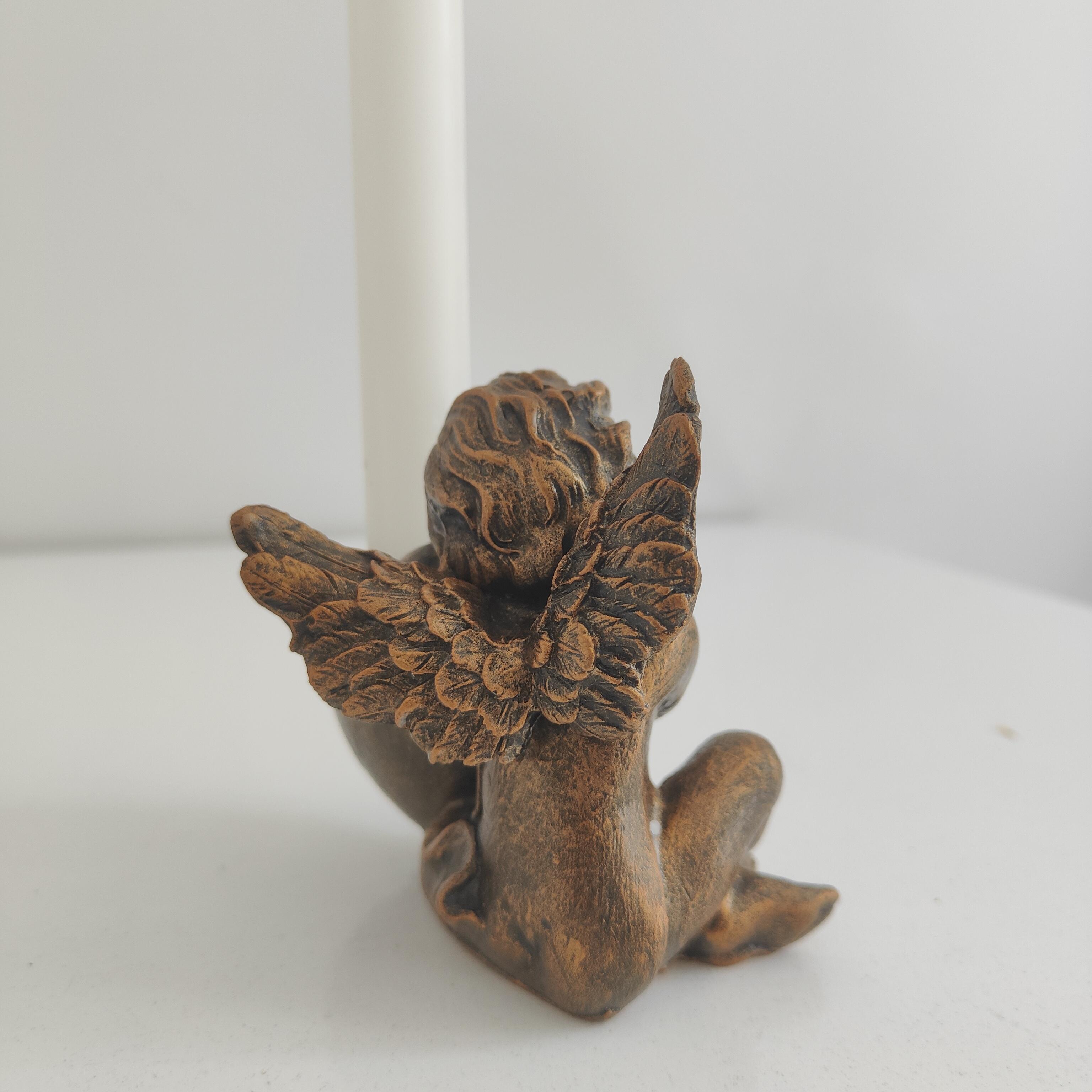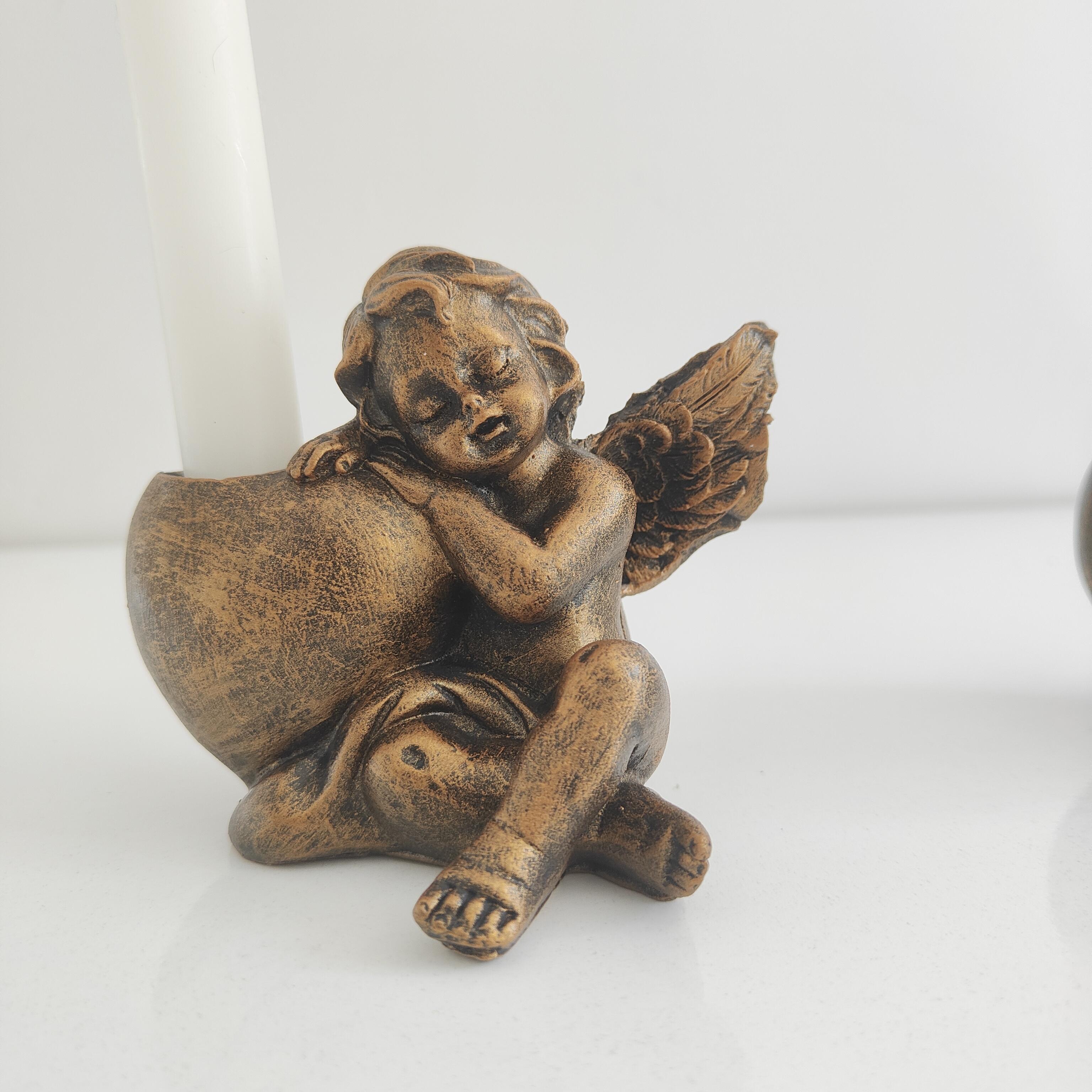 Zarif ve huzur veren tasarımıyla dikkat çeken Melek figürlü şamdan, altın eskitme tekniğiyle boyanmış ve her detayıyla zarafetini ortaya koyar. Melek figürü, manevi bir dokunuş sunarken, altın eskitme detayları ona şık ve nostaljik bir hava katmaktadır. Bu özel şamdan, ışığın yansımasıyla ortamınıza sıcak ve dingin bir atmosfer getirir.