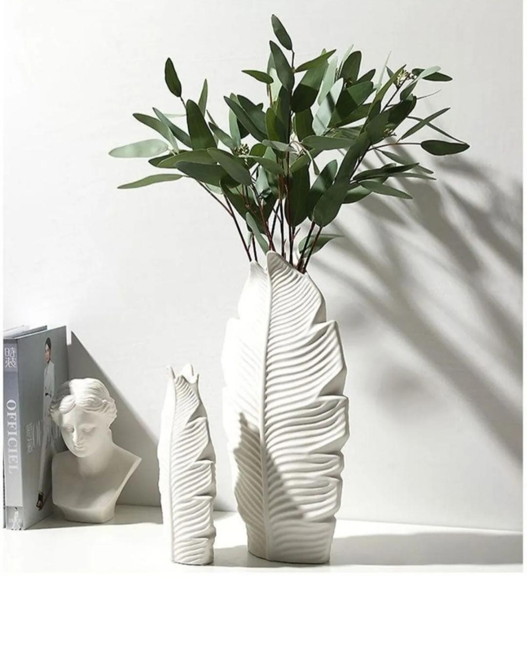 ilham alan zarif tasarımıyla bu yaprak formundaki vazolar, estetik ve şıklığı bir araya getiriyor. Seramik tozundan üretilen bu özel parçalar, hem dekoratif obje olarak kullanılabilir hem de çiçek aranjmanlarınız için şık bir tamamlayıcı olur.