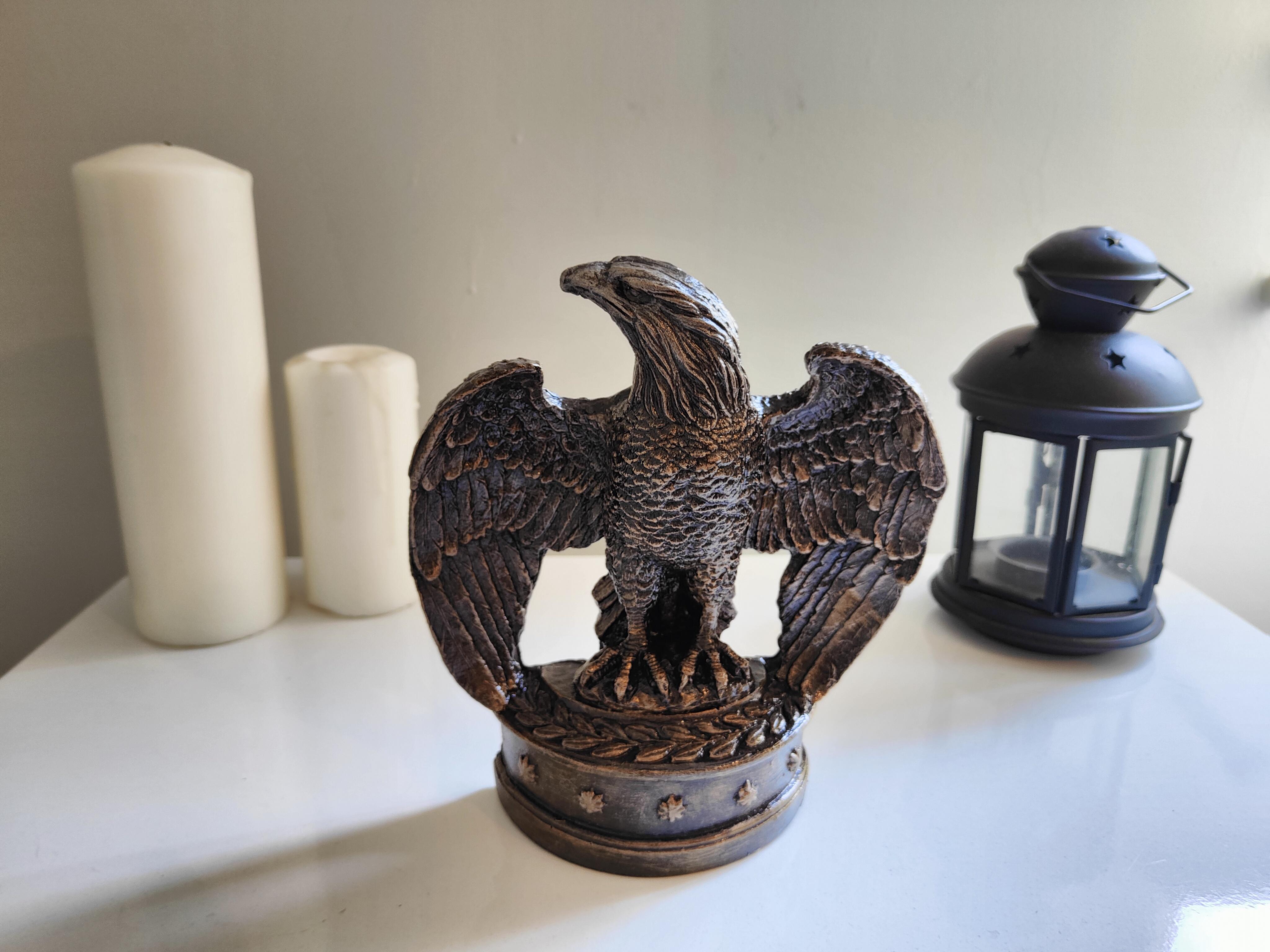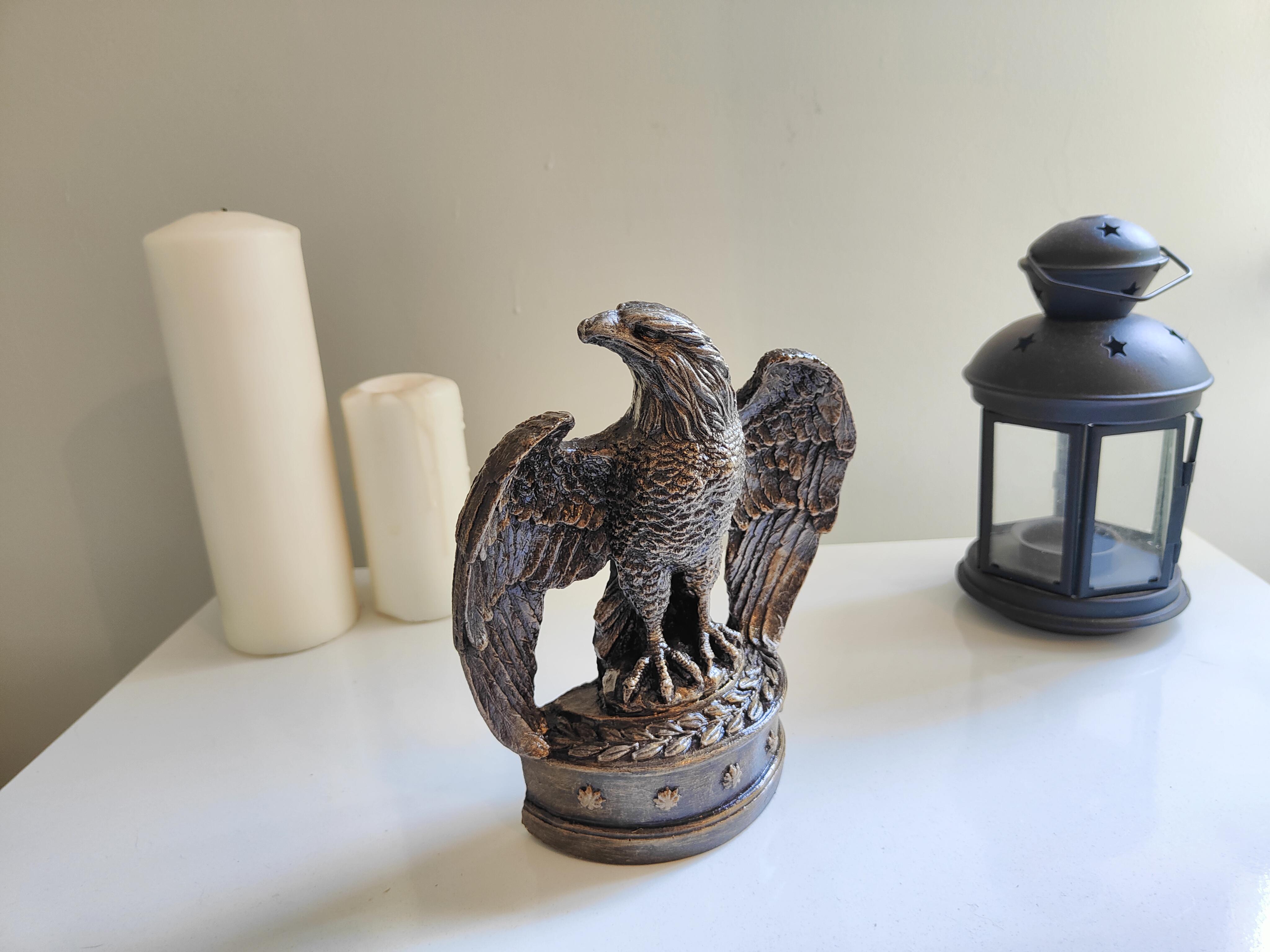 "El emeğiyle üretilmiş bu dekoratif altın eskitme kartal biblosu, gücün ve özgürlüğün simgesi olarak tasarlanmıştır. Usta işçilikle detaylandırılan bu özel parça, zarif altın eskitme dokusu sayesinde nostaljik ve asil bir hava taşır. Kanat detayları ve duruşuyla dikkat çeken bu biblomuz, mekanlarınıza ihtişam ve karakter katmak için mükemmel bir seçimdir. Klasik ve modern dekorasyon tarzlarıyla uyum sağlayarak evinizde veya ofisinizde şık bir odak noktası oluşturur. Koleksiyonluk veya anlamlı bir hediye alternatifi olarak da değerlendirilebilir."