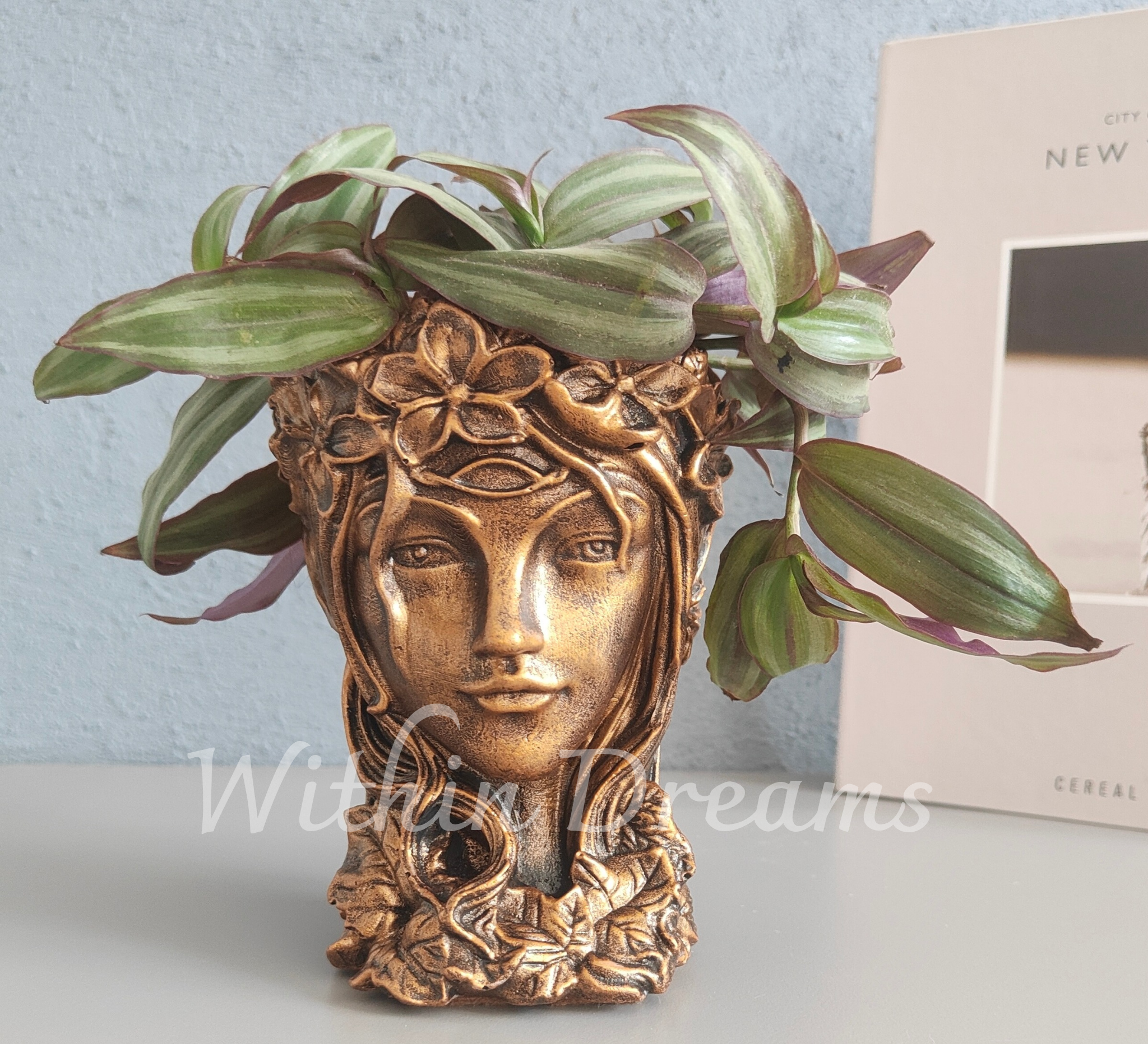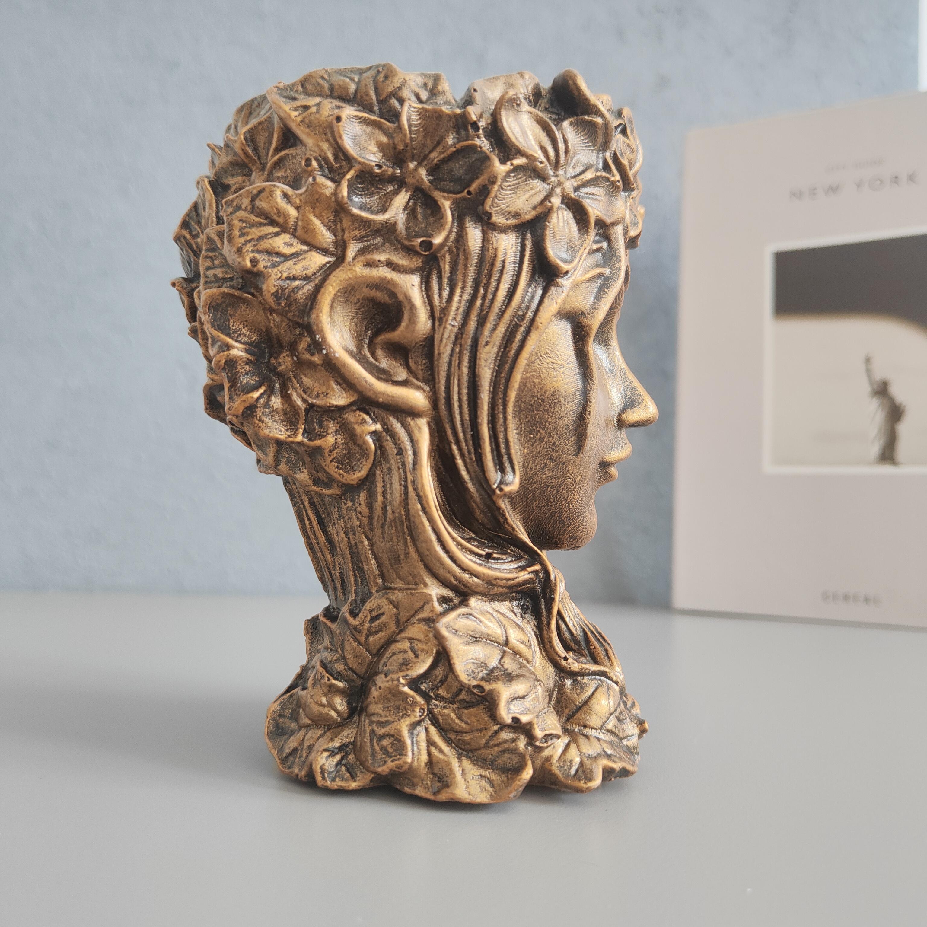 Zamansız bir estetik sunan Antik Doku Tanrıça Saksı , mitolojiden ilham alan zarif tasarımıyla dekorasyonunuza sanatsal bir dokunuş katıyor. Seramik tozu ile dökülmüş ve tamamen el emeğiyle üretilmiştir. Altın eskitme detaylarıyla antik bir görünüm kazanan bu saksı ,çiçekleriniz ve bitkileriniz için şık bir yuva olmasının yanı sıra, heykelsi duruşuyla da tek başına göz alıcı bir dekoratif obje olarak kullanılabilir. İç ve dış mekan dekorasyonuna sofistike bir hava katmak isteyenler için mükemmel bir seçim!