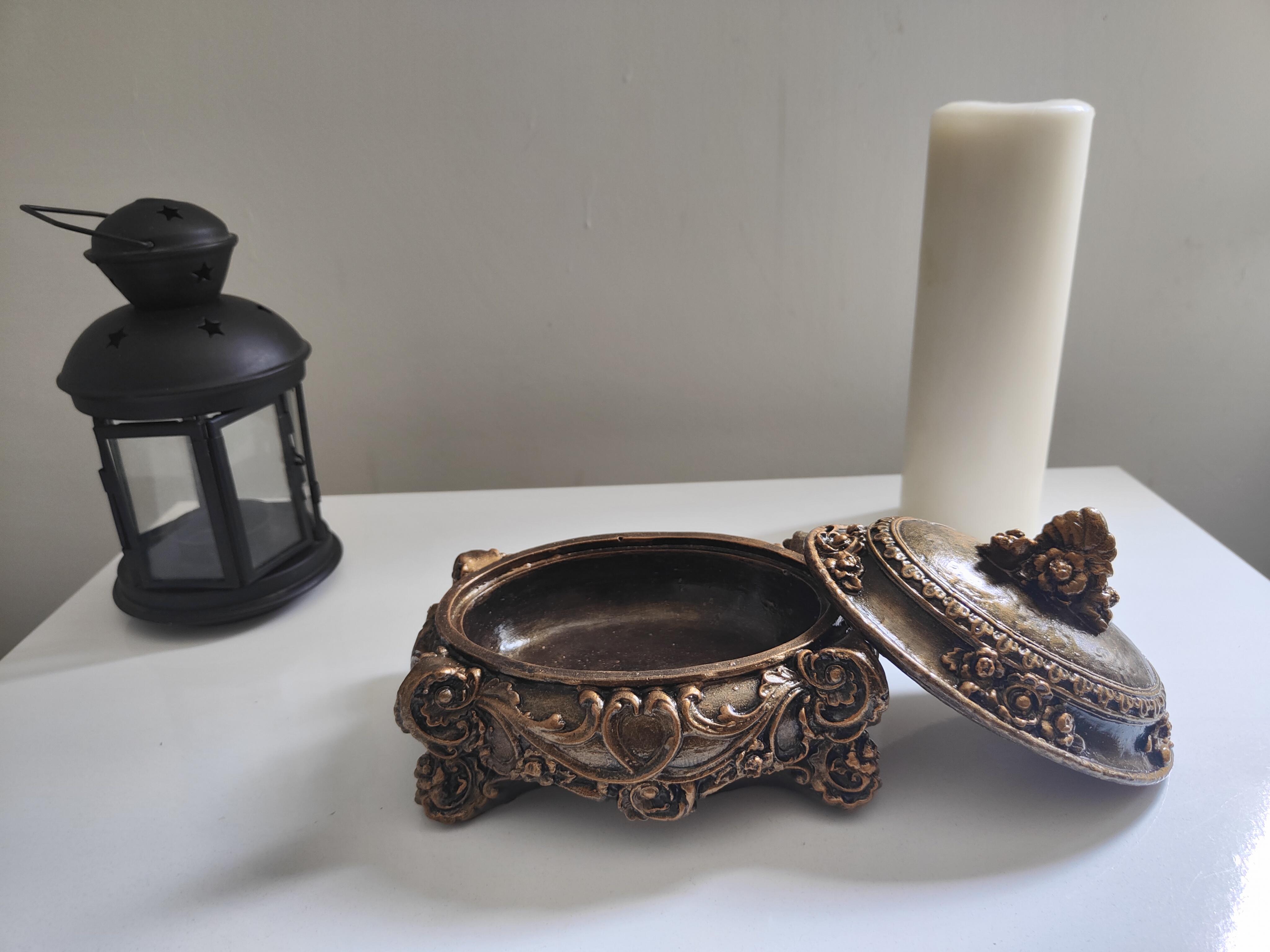 Zarif ve nostaljik tasarımıyla dikkat çeken Vintage Altın Eskitme Dekoratif Kutu, hem şıklığı hem de işlevselliği bir araya getiriyor. Seramik tozundan üretilmiş, el emeği ile özenle şekillendirilmiş ve gümüş renk ile tamamlanmış bu özel kutu, vintage tarzı sevenler için mükemmel bir seçimdir.