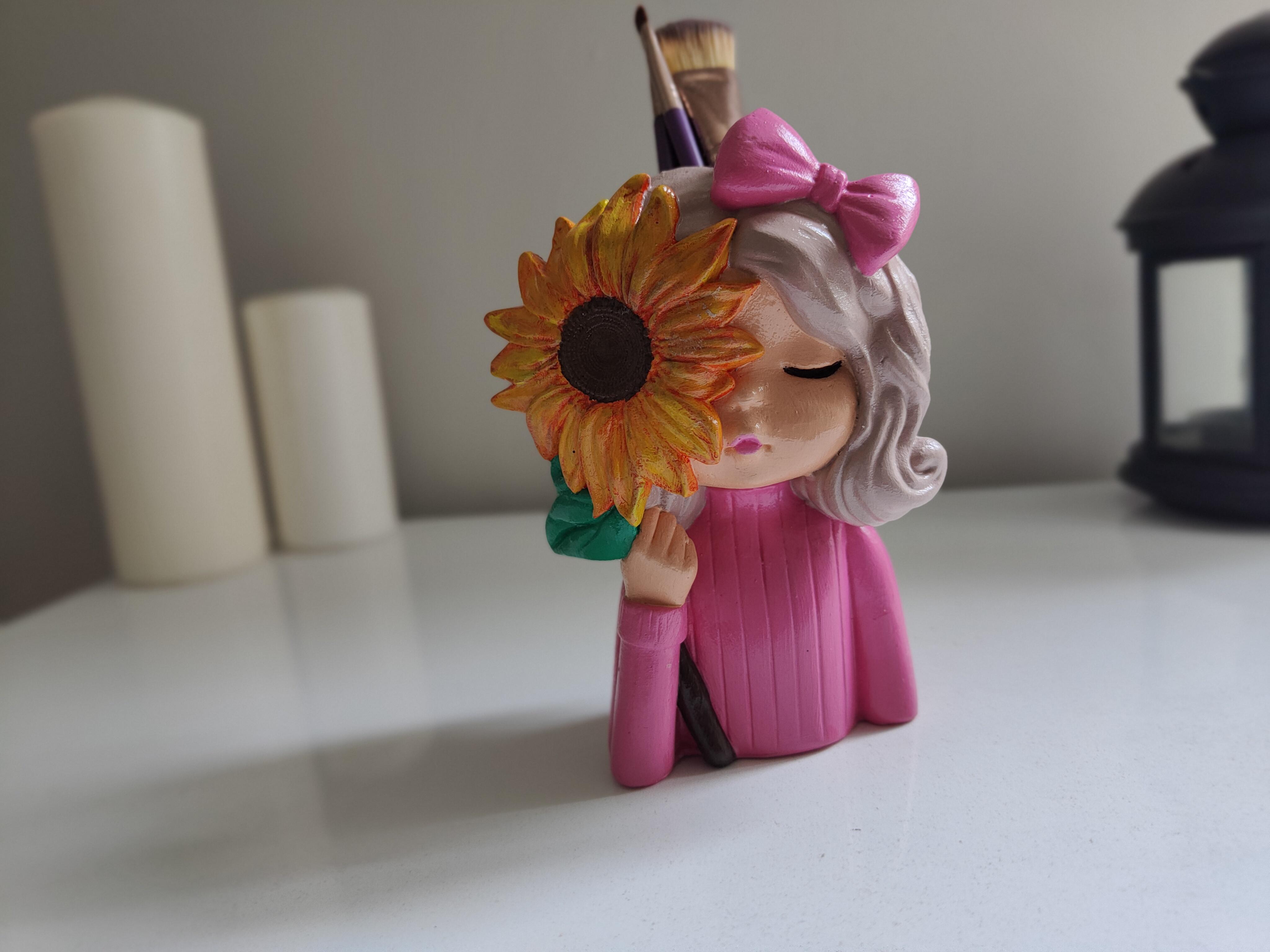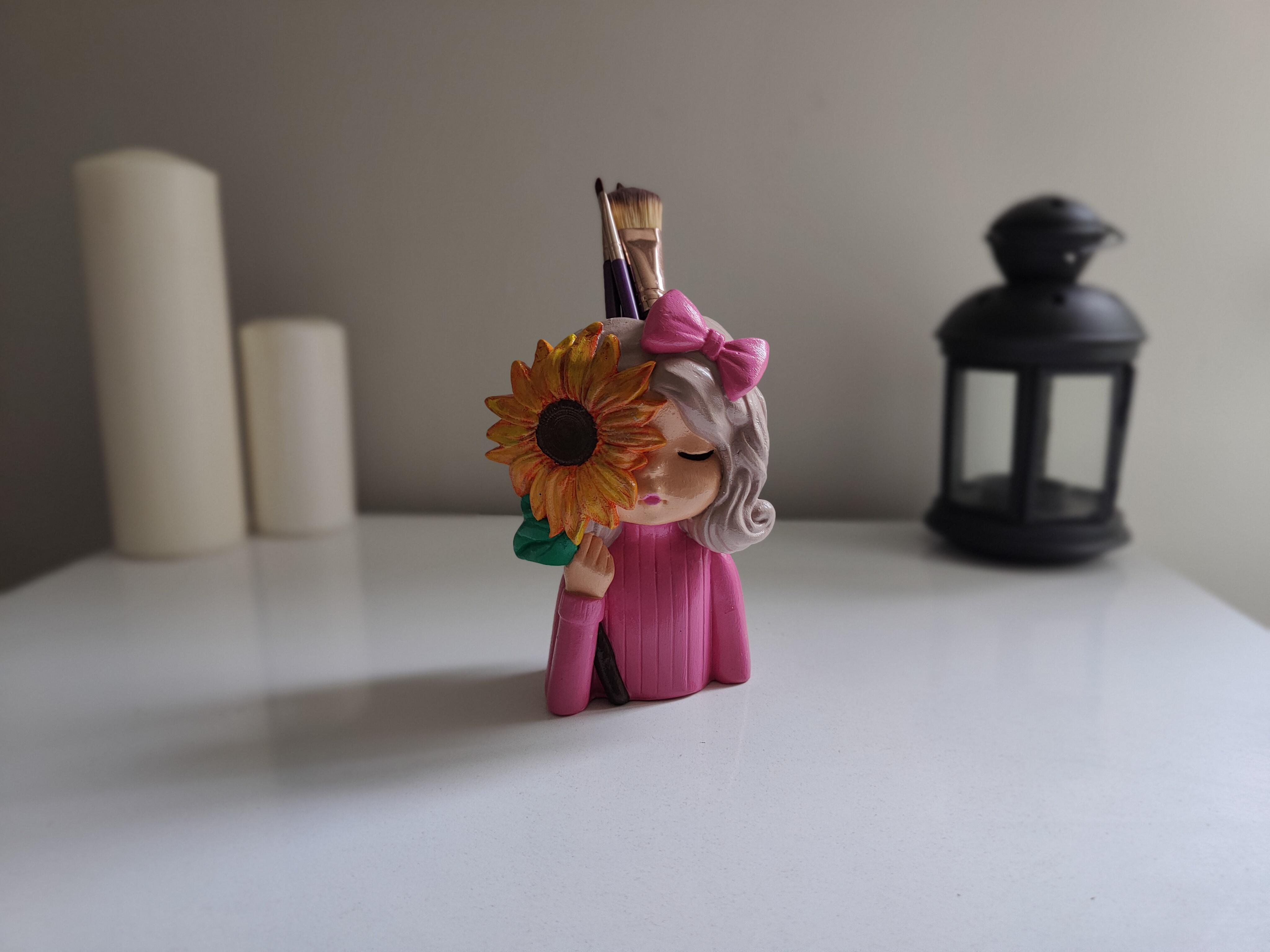 Gözündeki ayçiçeği detayıyla dikkat çeken bu şık ve eğlenceli obje, çalışma masalarından oturma odalarına kadar her köşeye estetik bir hava kazandırır. Hem kendiniz hem de sevdikleriniz için benzersiz bir hediye alternatifi!