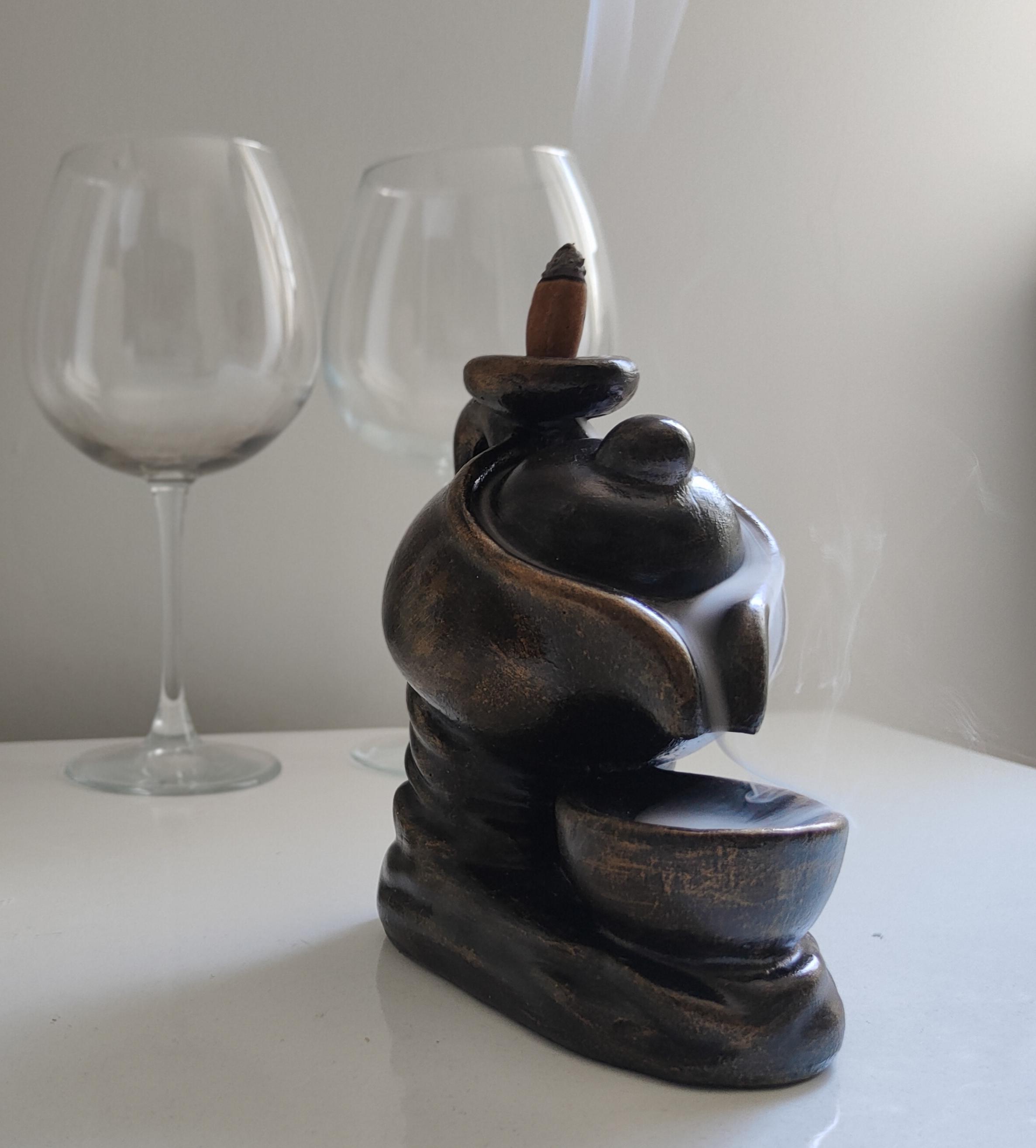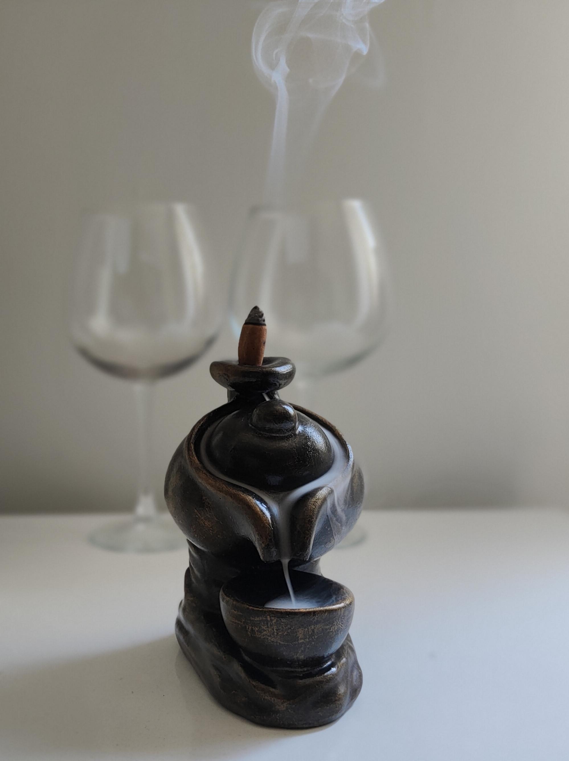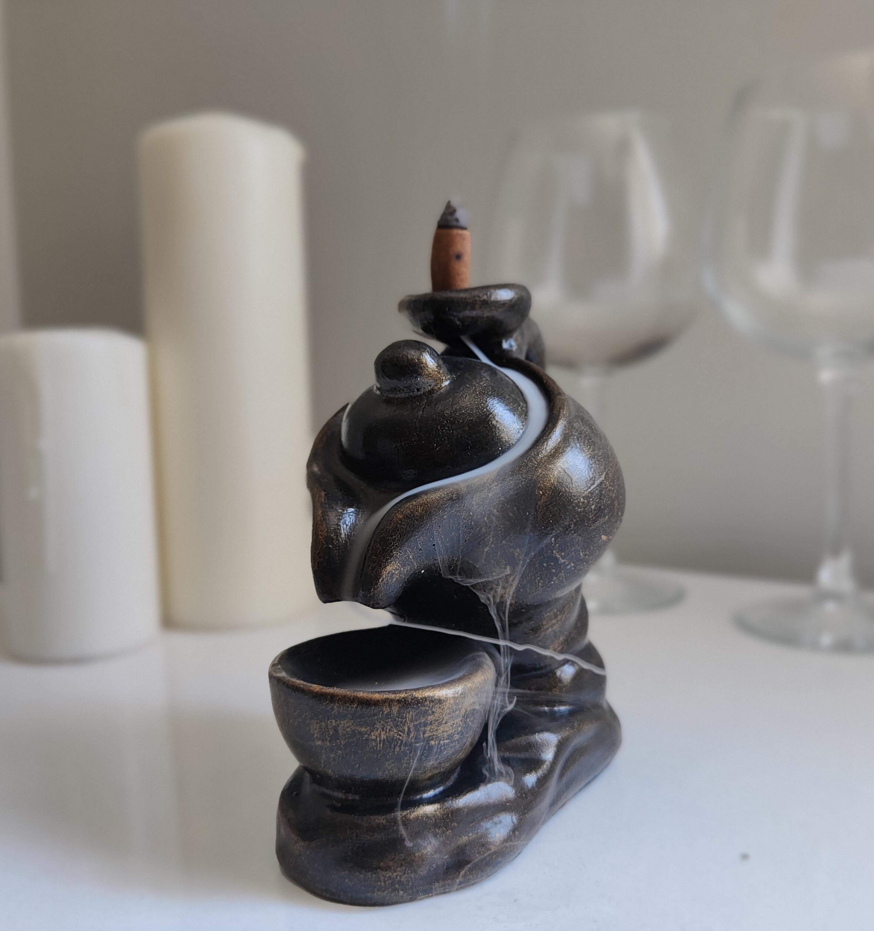 "Altın eskitme detaylarıyla zarif bir görünüme sahip bu özel tütsülük, seramik tozundan üretilmiştir. Üzerine yerleştirilen geri akışlı tütsü, dumanı şelale gibi aşağıya akıtarak mistik ve huzur verici bir atmosfer oluşturur. Hem dekoratif hem de işlevsel olan bu benzersiz tasarım, yaşam alanlarınıza estetik ve sakinlik katmak için ideal bir seçimdir."