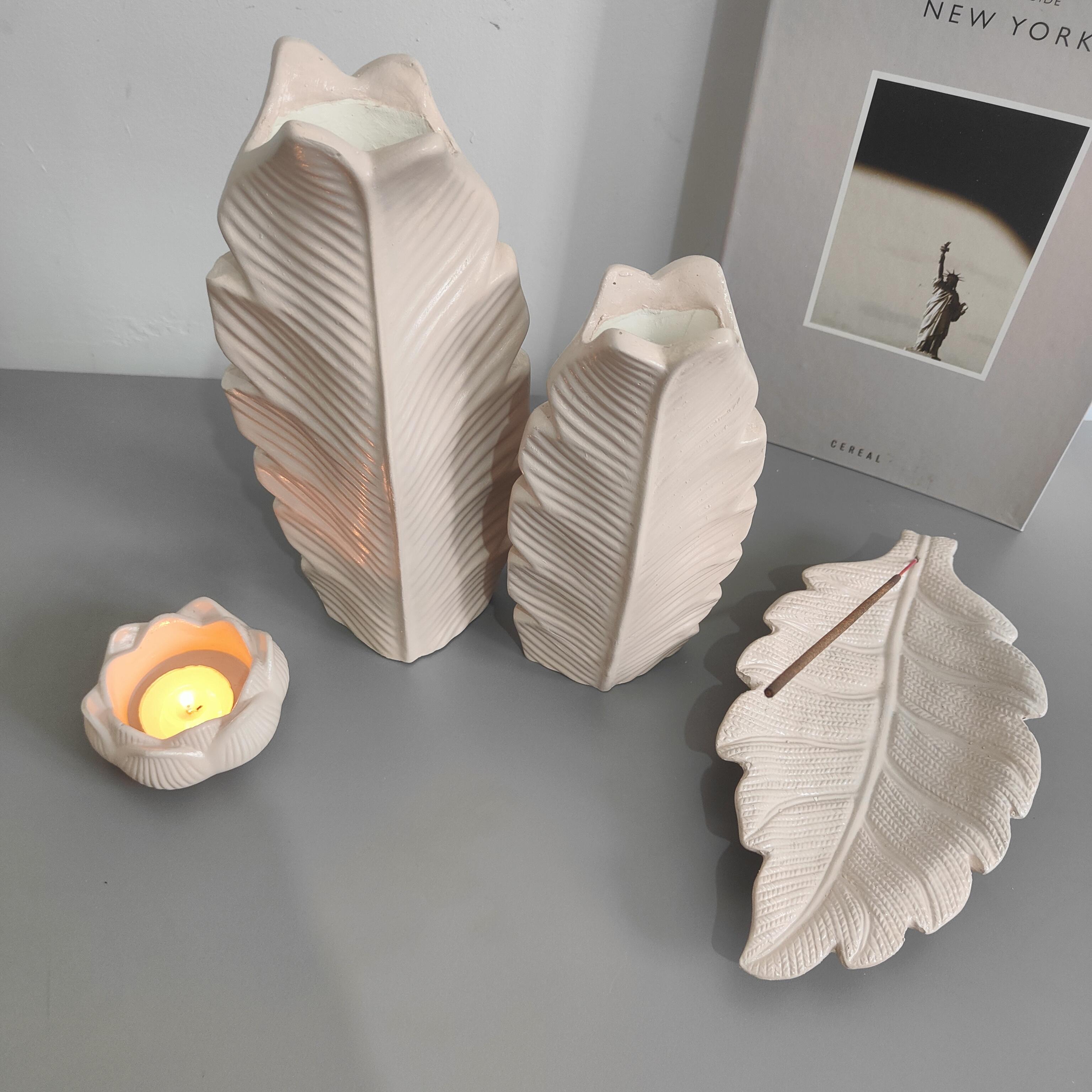 Doğadan ilham alan zarif tasarımıyla Doğanın Dokunuşu Dekor Seti, yaşam alanlarınıza doğal bir estetik katıyor. El emeğiyle üretilmiş bu özel set; bir adet yaprak formunda tütsülük, bir adet lotus desenli mumluk ve biri küçük, biri büyük olmak üzere iki yaprak şeklinde vazodan oluşmaktadır. Yaprak formunun organik dokusu ve lotus çiçeğinin huzur veren enerjisi, bu seti hem dekoratif hem de işlevsel hale getiriyor. Doğal ve sofistike bir atmosfer yaratmak isteyenler için mükemmel bir seçim!