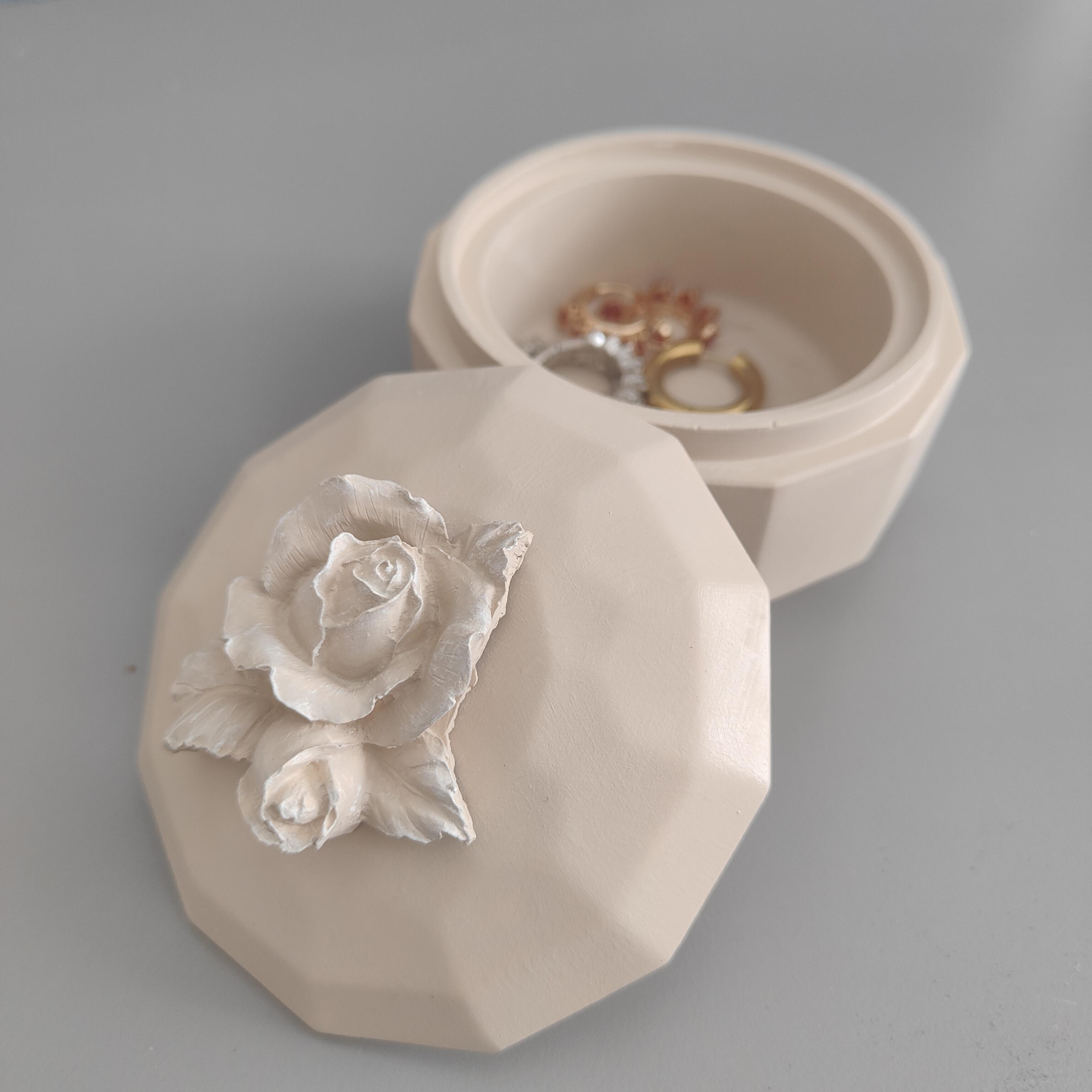 Gül Kapaklı Kutu: Takılarınızı, pamuklarınızı veya küçük banyo aksesuarlarınızı saklamak için şık bir seçenek sunar.