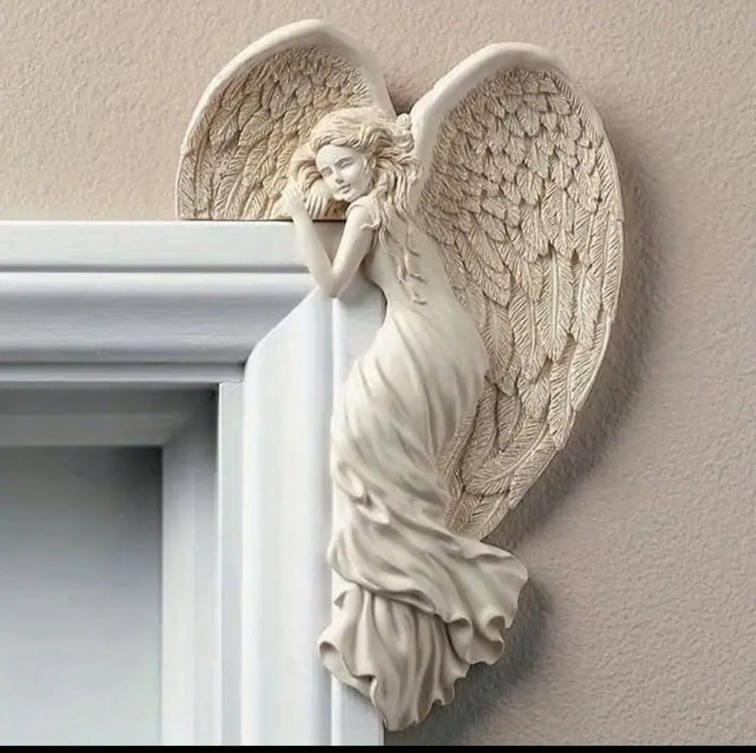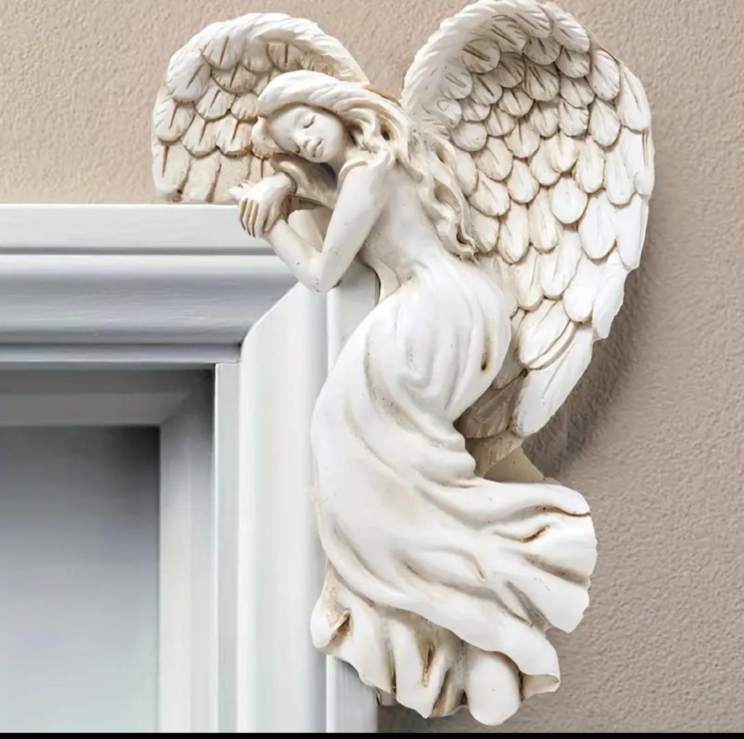 Bu özel melek figürü, seramik tozundan döküm tekniğiyle şekillendirilmiş ve tamamen el emeği ile hazırlanmıştır. Fildişi eskitme tekniği kullanılarak boyanmış olup, zarif ve vintage bir görünüm kazanmıştır. Sağ kapı kanadı dekorasyonu için ideal olan bu melek figürü, mekâna huzurlu ve estetik bir atmosfer katarken, şık ve anlamlı bir detay oluşturur. Hem klasik hem de modern dekorasyonlarla uyum sağlayarak, kapınızı veya duvarınızı sanatsal bir dokunuşla tamamlar.