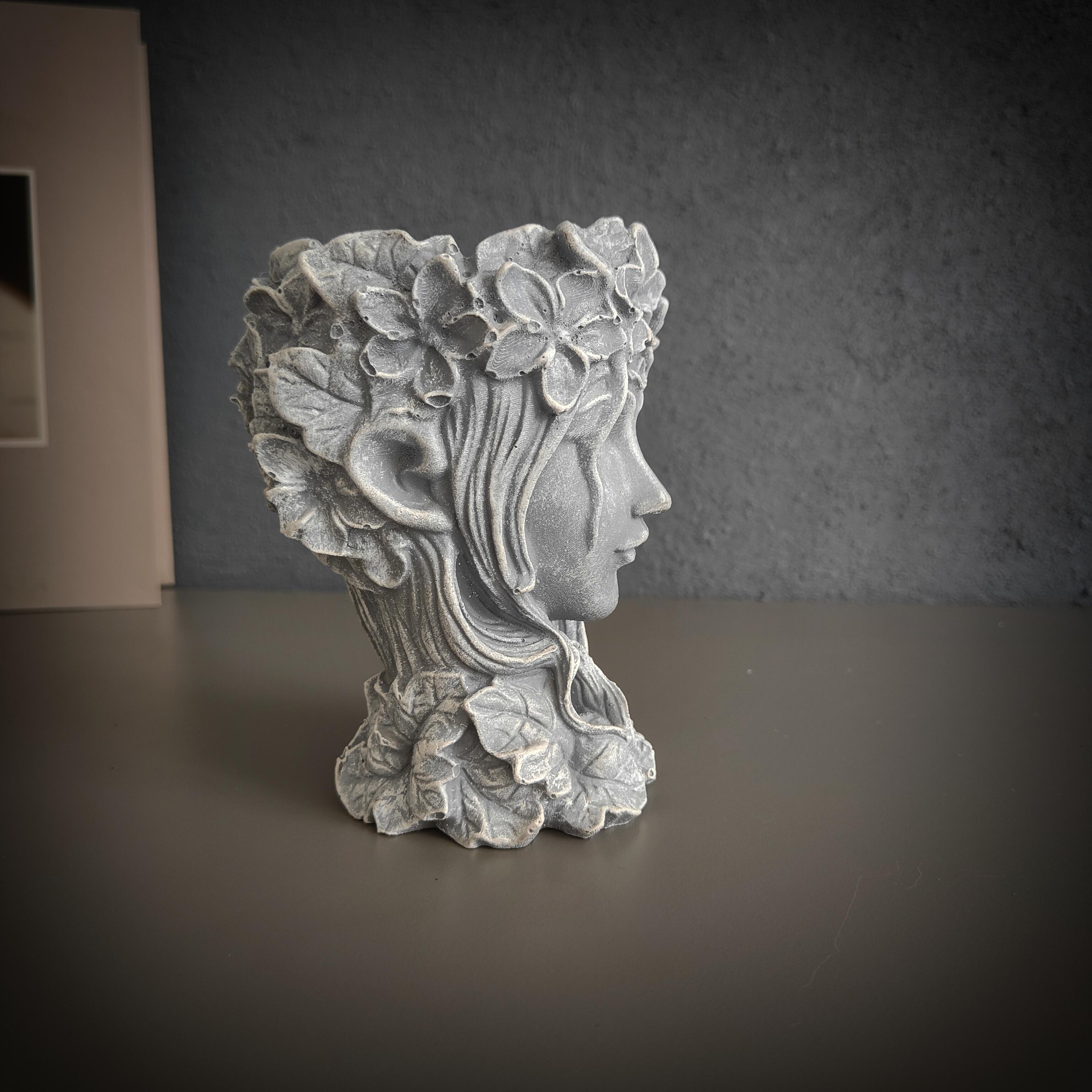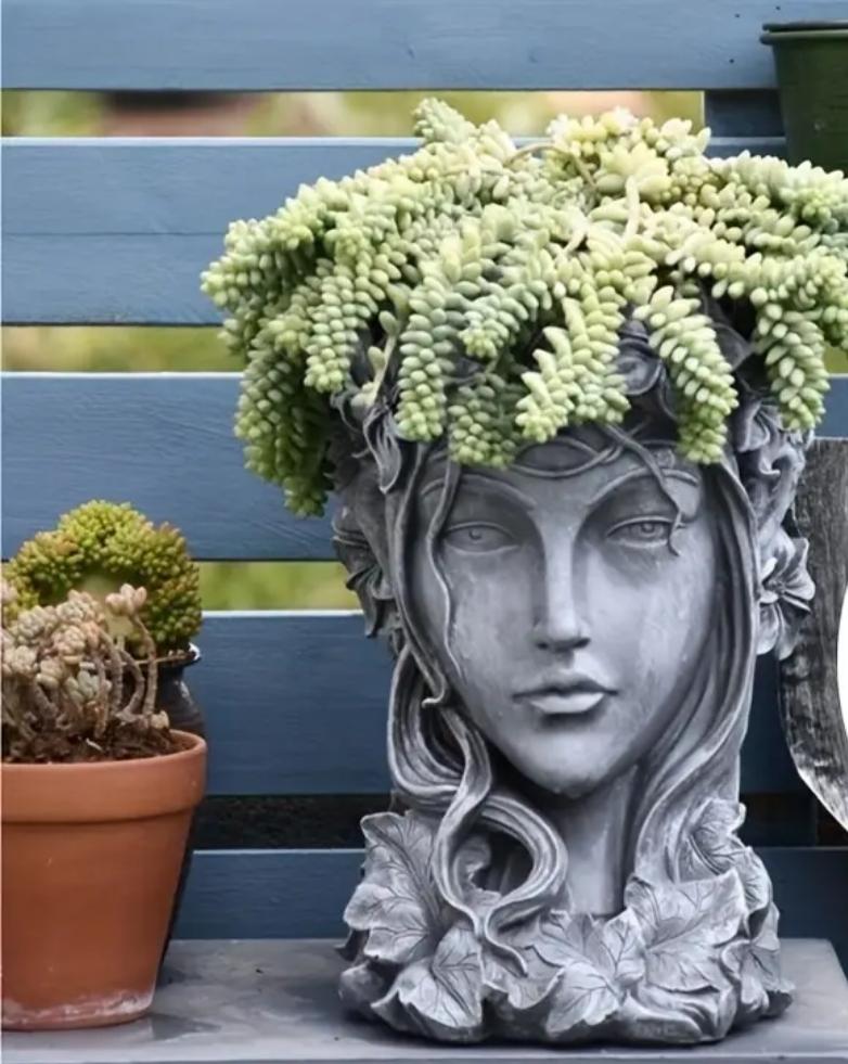 Zamansız bir estetik sunan Antik Doku Tanrıça Saksı , mitolojiden ilham alan zarif tasarımıyla dekorasyonunuza sanatsal bir dokunuş katıyor. Seramik tozu ile dökülmüş ve tamamen el emeğiyle üretilmiştir. Gri tonları üzerine beyaz eskitme detaylarıyla antik bir görünüm kazanan bu saksı ,çiçekleriniz ve bitkileriniz için şık bir yuva olmasının yanı sıra, heykelsi duruşuyla da tek başına göz alıcı bir dekoratif obje olarak kullanılabilir. İç ve dış mekan dekorasyonuna sofistike bir hava katmak isteyenler için mükemmel bir seçim!