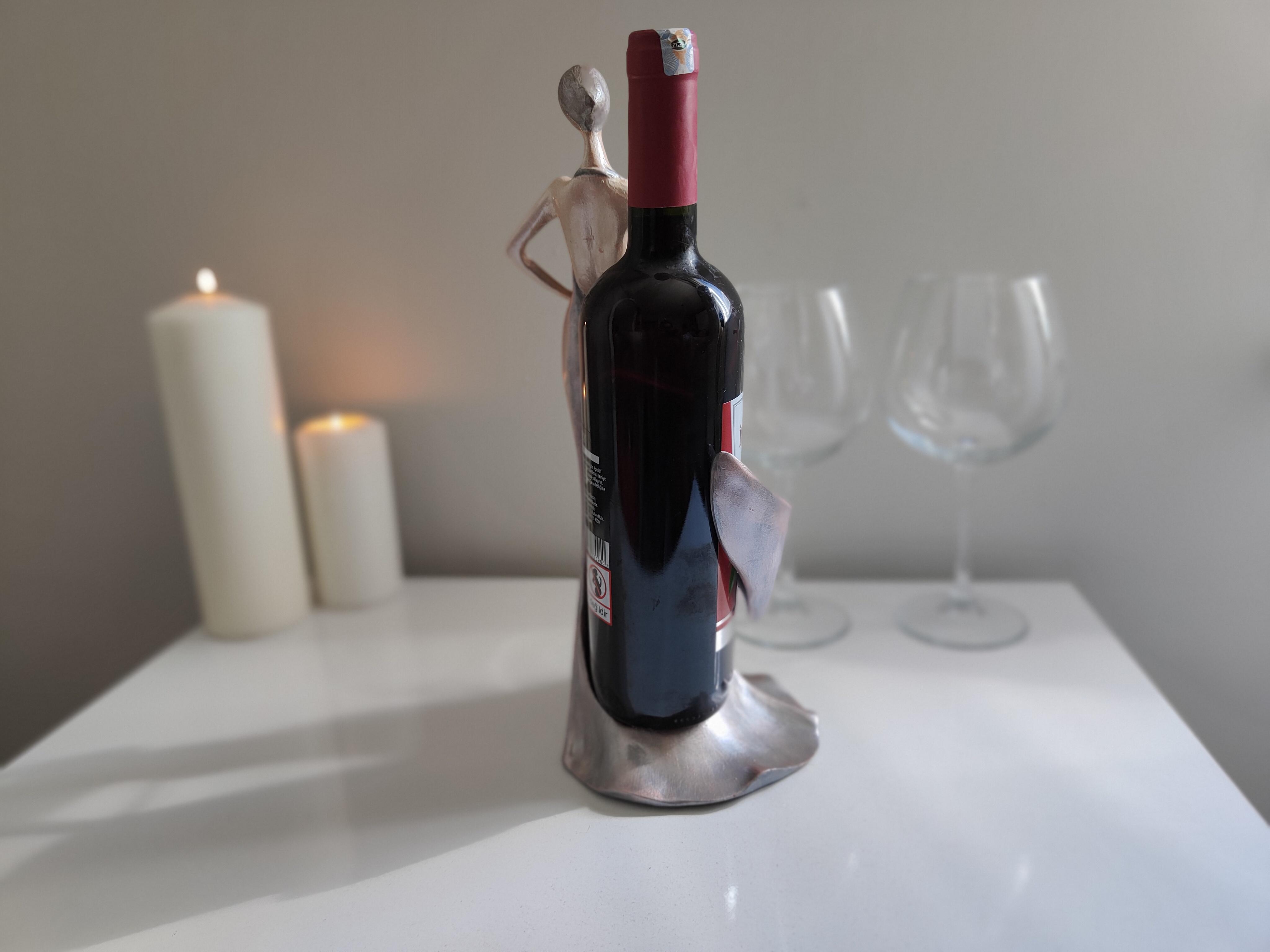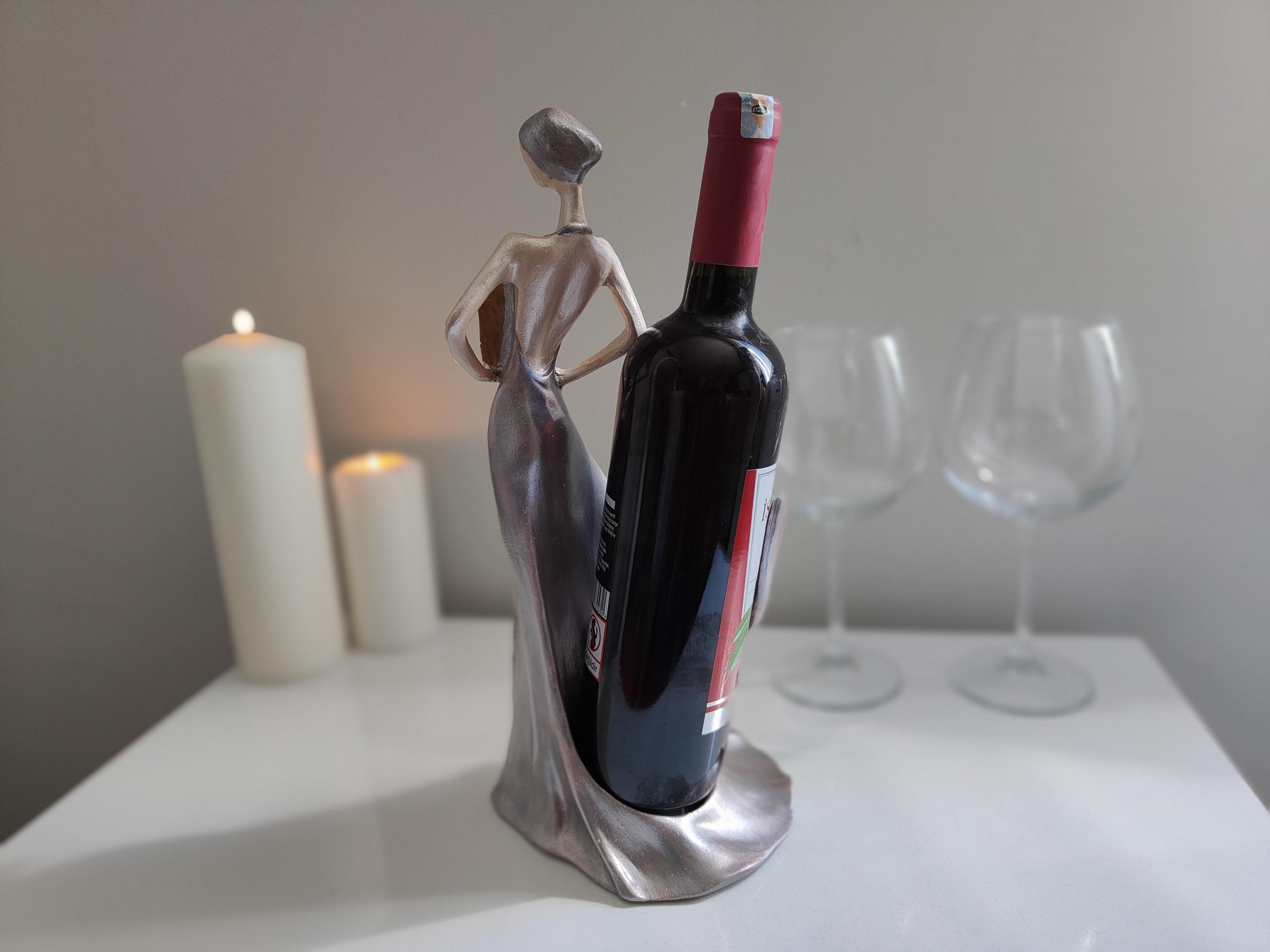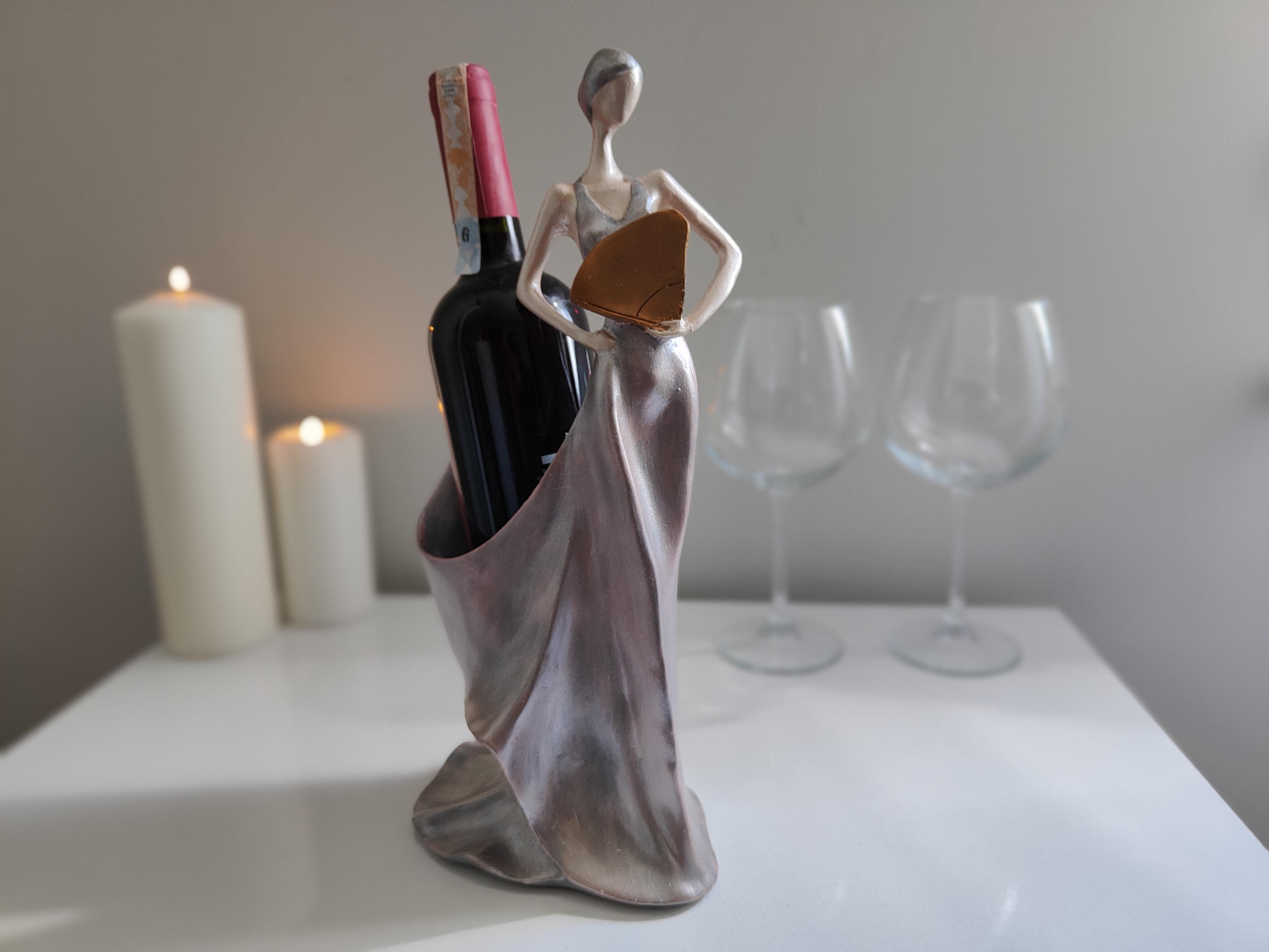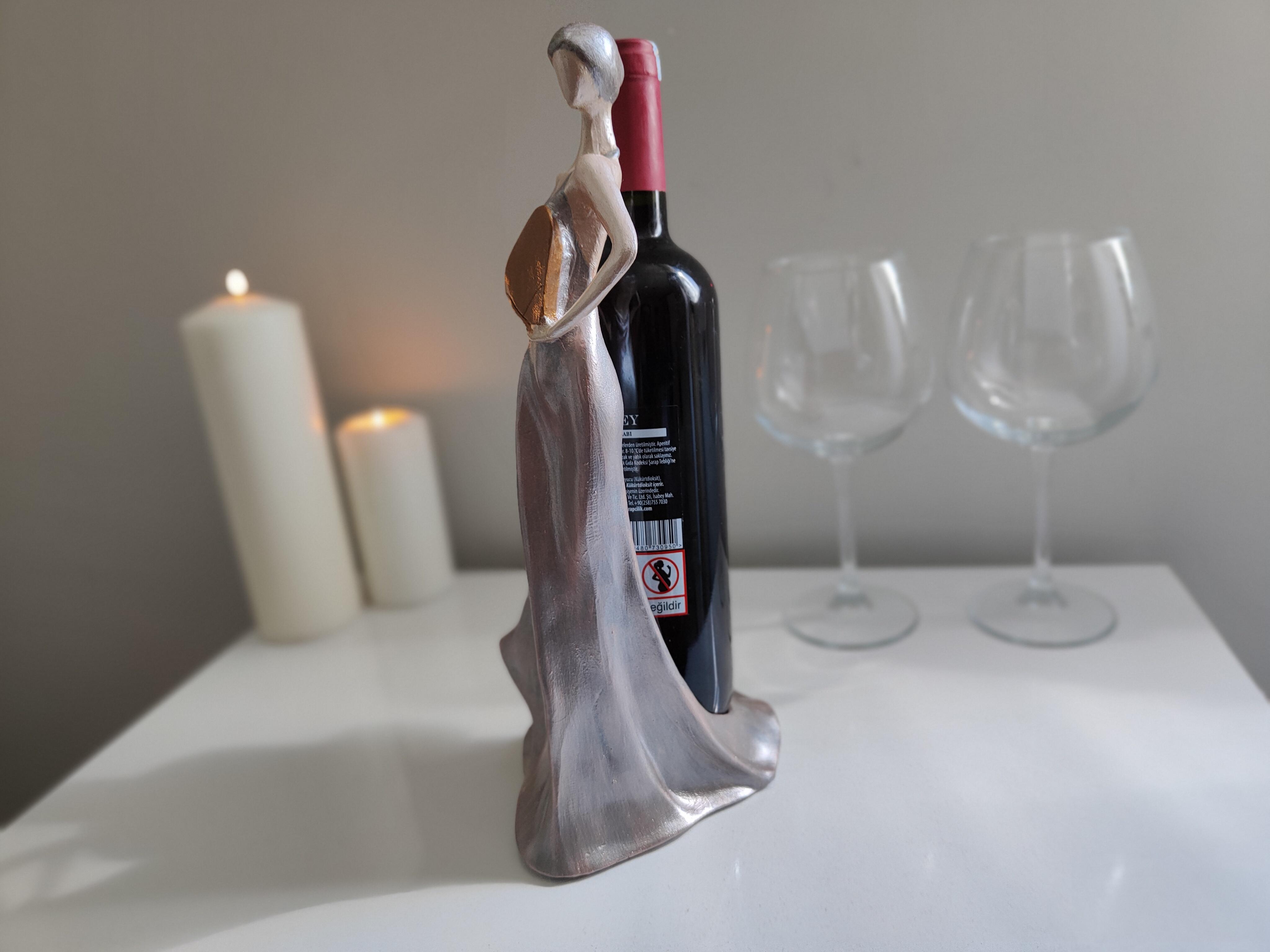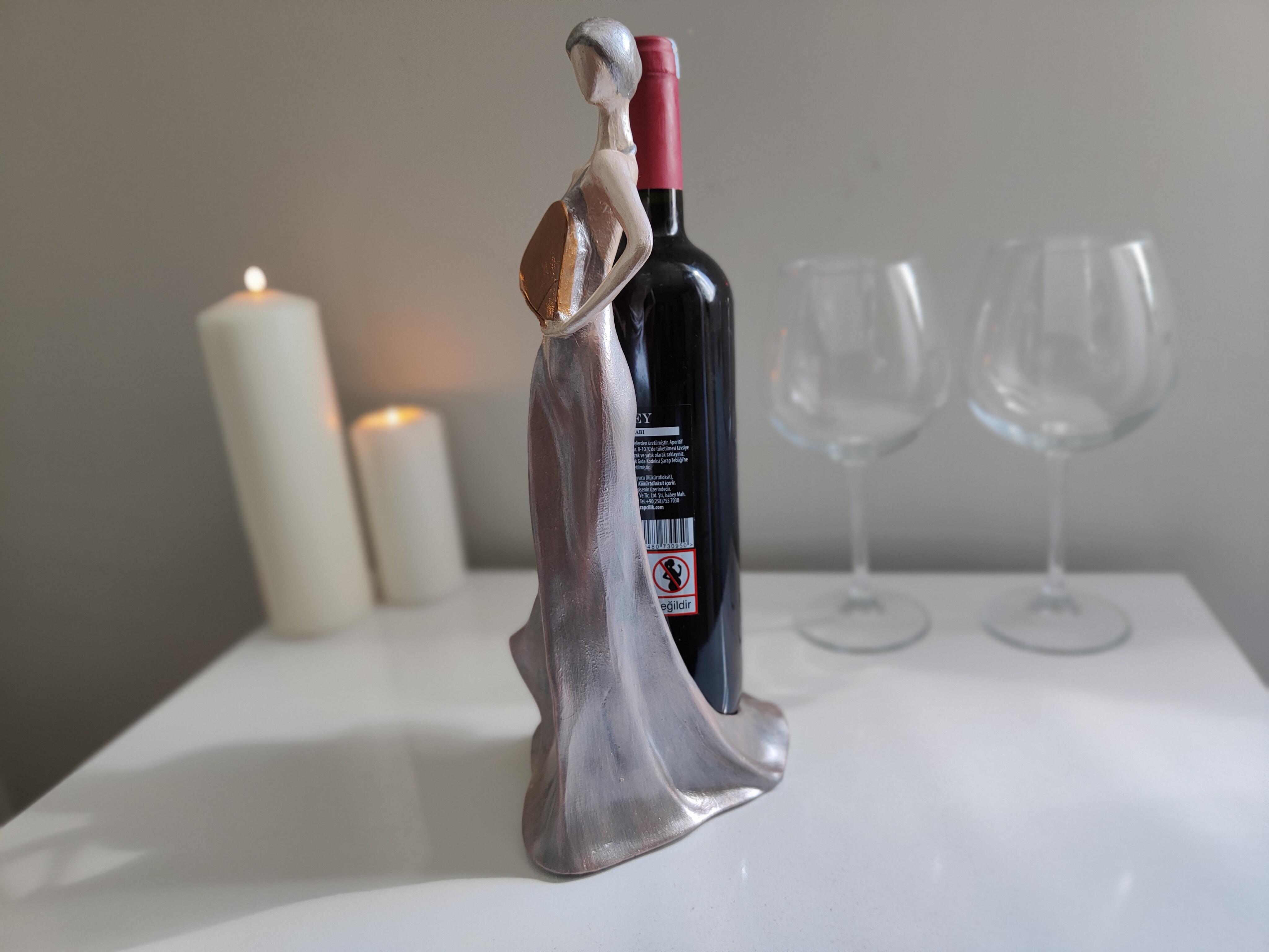 "Sanat ve işlevselliğin buluştuğu özel bir tasarım! Gümüş esintili detaylarıyla dikkat çeken kadın silüeti şeklindeki bu polyester şaraplık, şıklığı ve zarafeti sofralarınıza taşıyor. Hem dekoratif bir obje hem de şarap sunumunuza sanatsal bir dokunuş katacak bu eşsiz parça, evinizin veya özel davetlerinizin en göz alıcı aksesuarı olacak."
