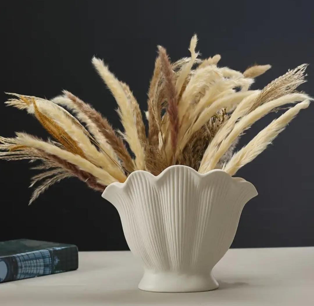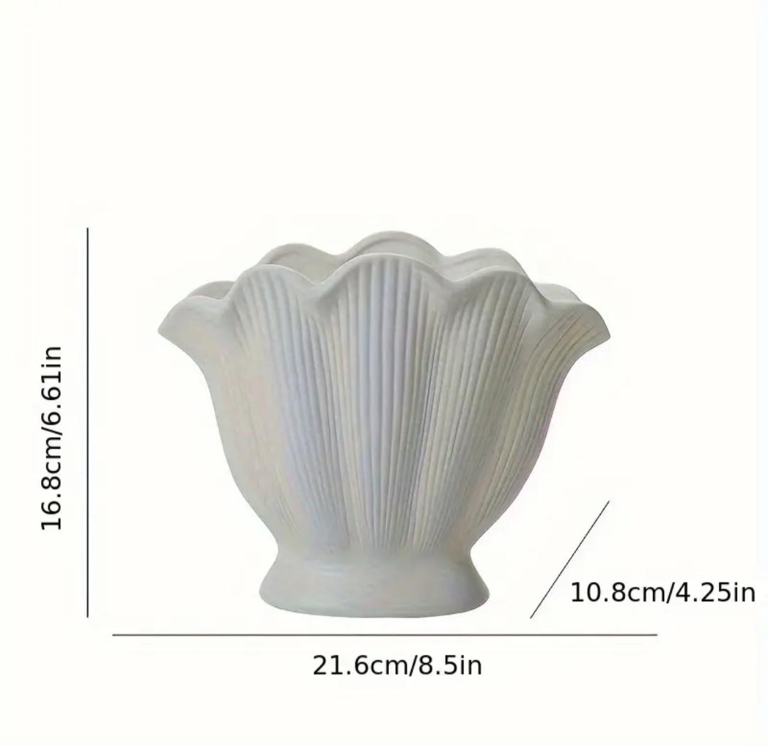 "Denizden ilham alan estetik tasarımıyla öne çıkan bu istiridye şeklindeki vazo, yaşam alanlarınıza doğal ve zarif bir dokunuş katıyor. El yapımı seramik tozundan üretilmiş ve özenle şekillendirilmiştir. Organik formu ve yumuşak hatlarıyla deniz kabuğunun doğal güzelliğini yansıtan bu vazo, ister çiçeklerle ister tek başına dekoratif bir obje olarak kullanılabilir. Doğal ve sofistike bir atmosfer yaratmak isteyenler için mükemmel bir seçim!"