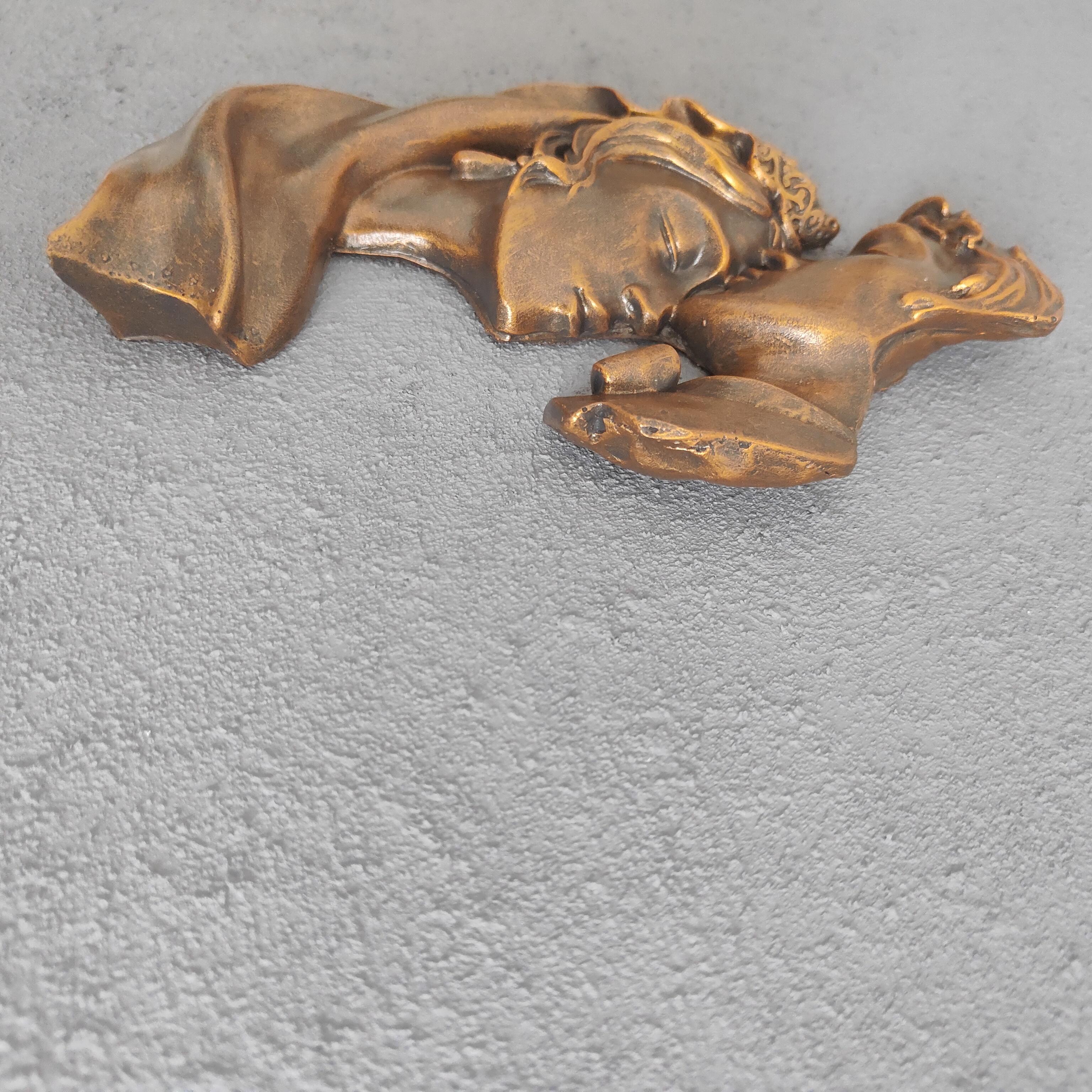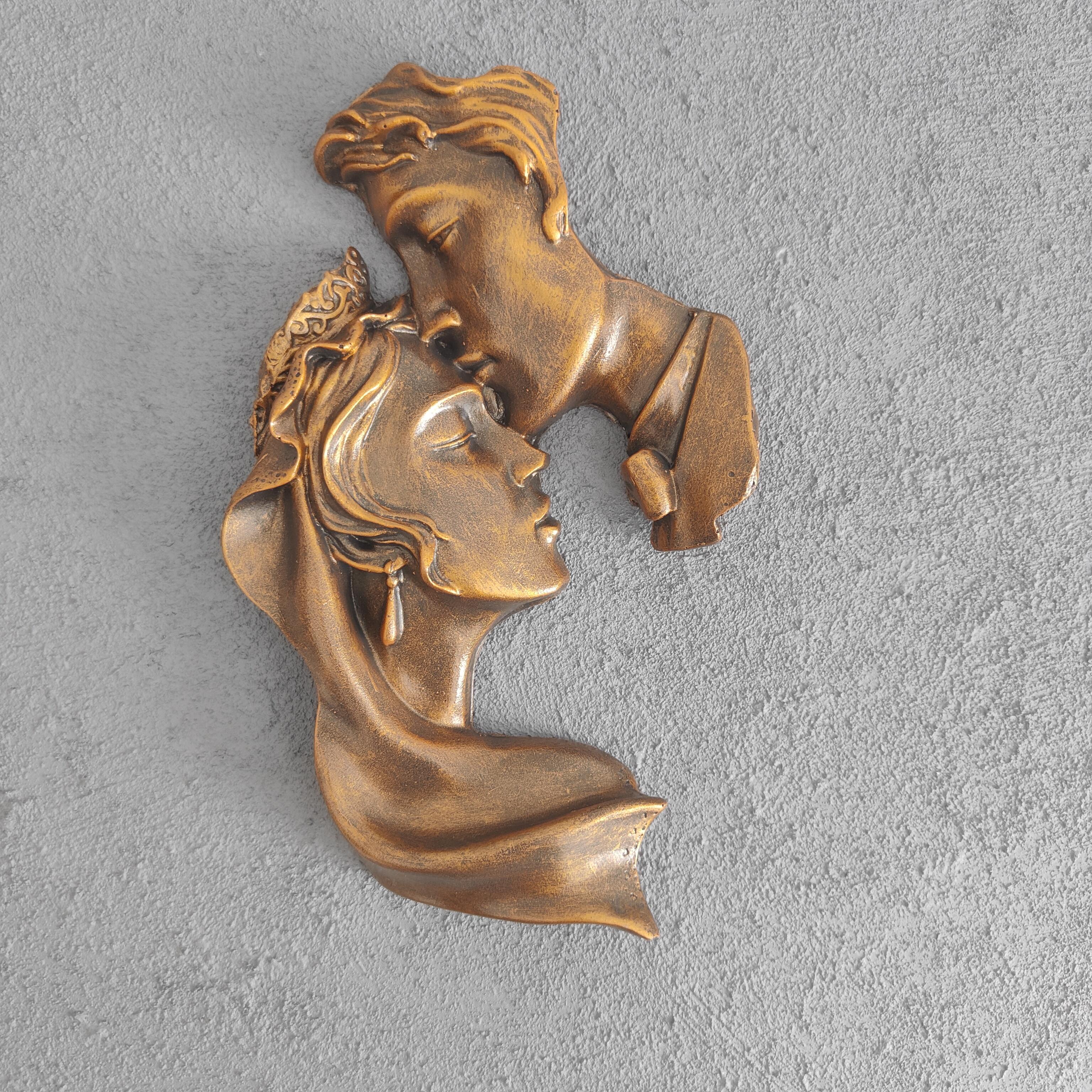 Bu zarif duvar panosu, seramik tozu kullanılarak tamamen el emeğiyle üretilmiştir. Kafasında taç olan bir kadını alnından öpen erkek figürü, aşkın, bağlılığın ve saygının sembolüdür. Altın eskitme detayları, tasarıma klasik ve asil bir hava katmaktadır.
