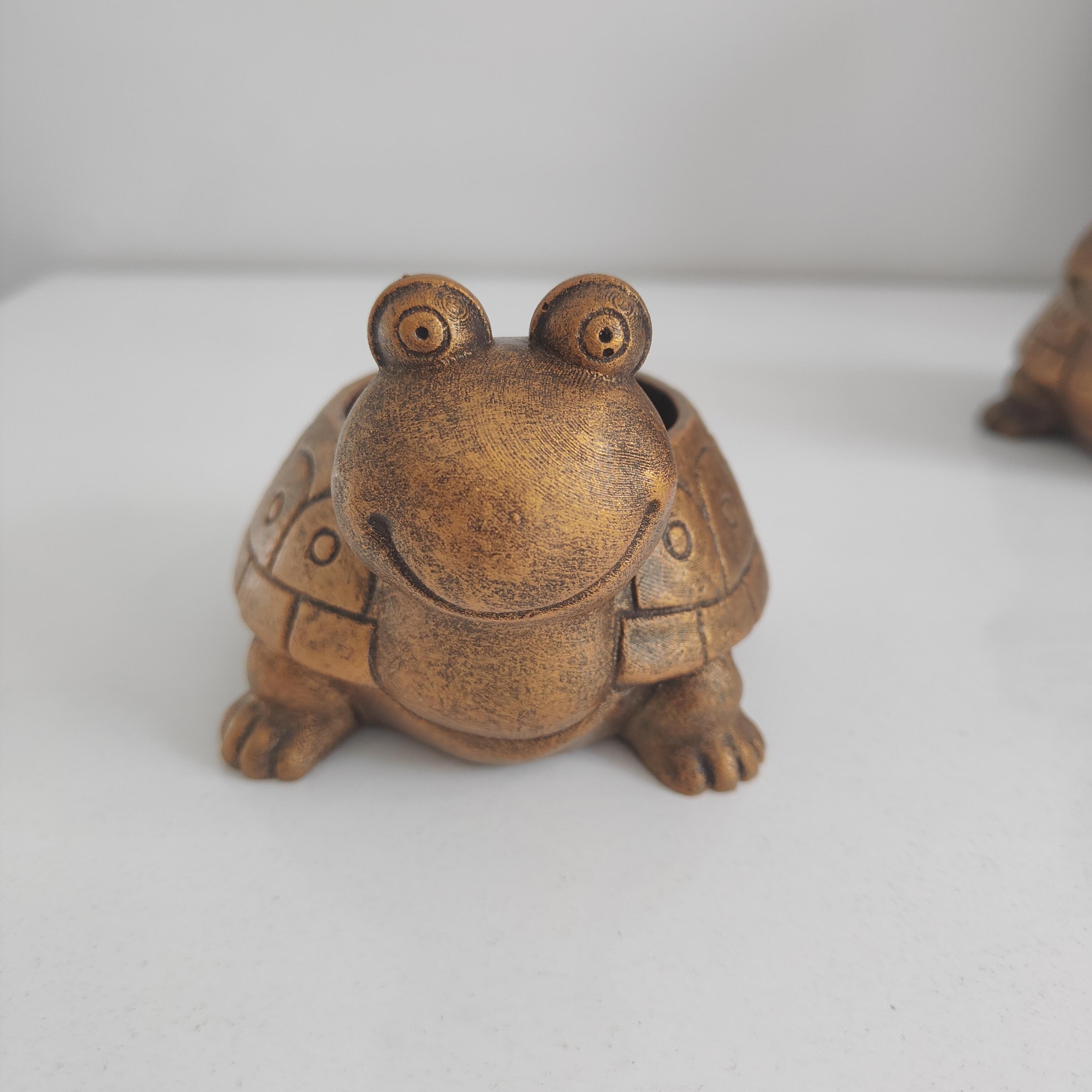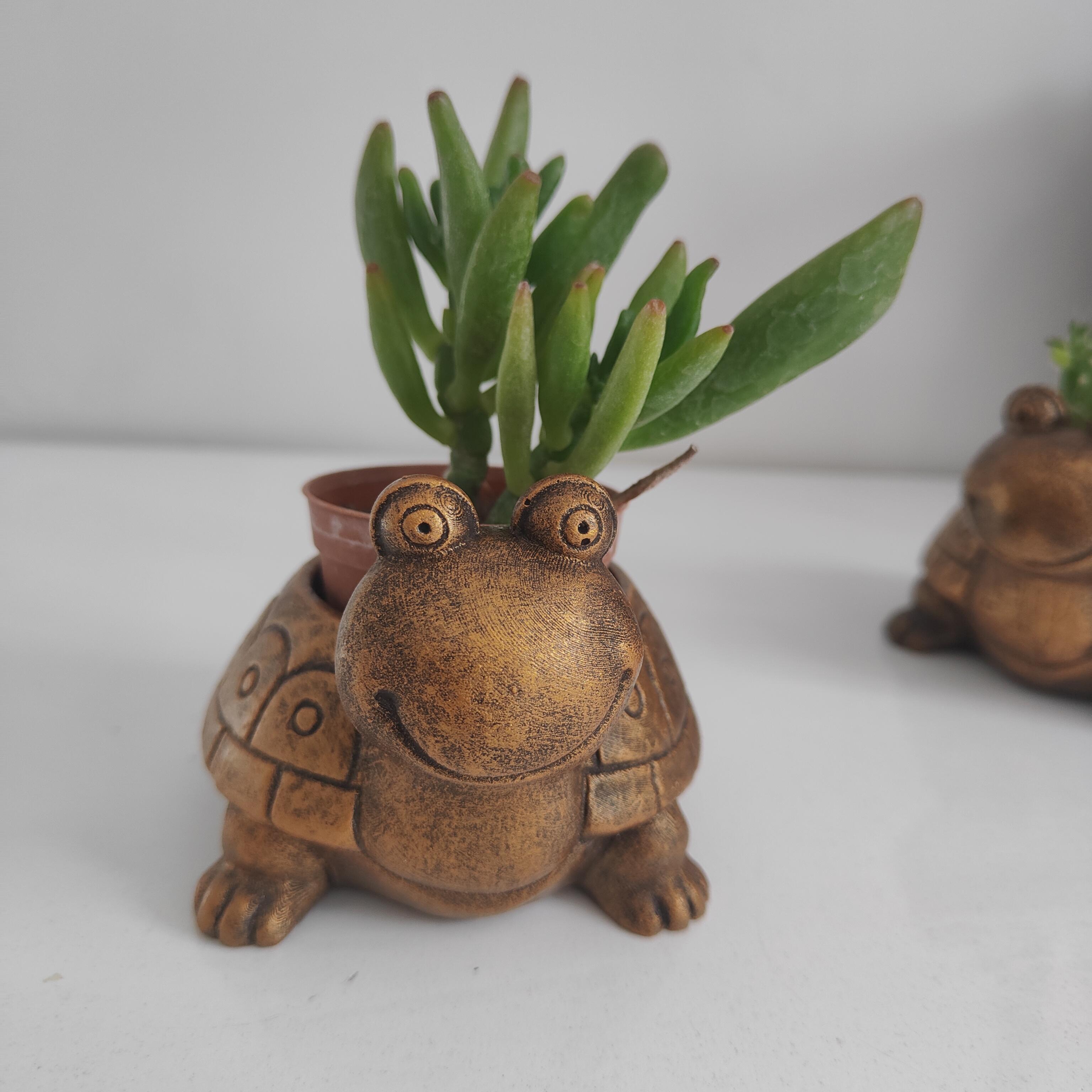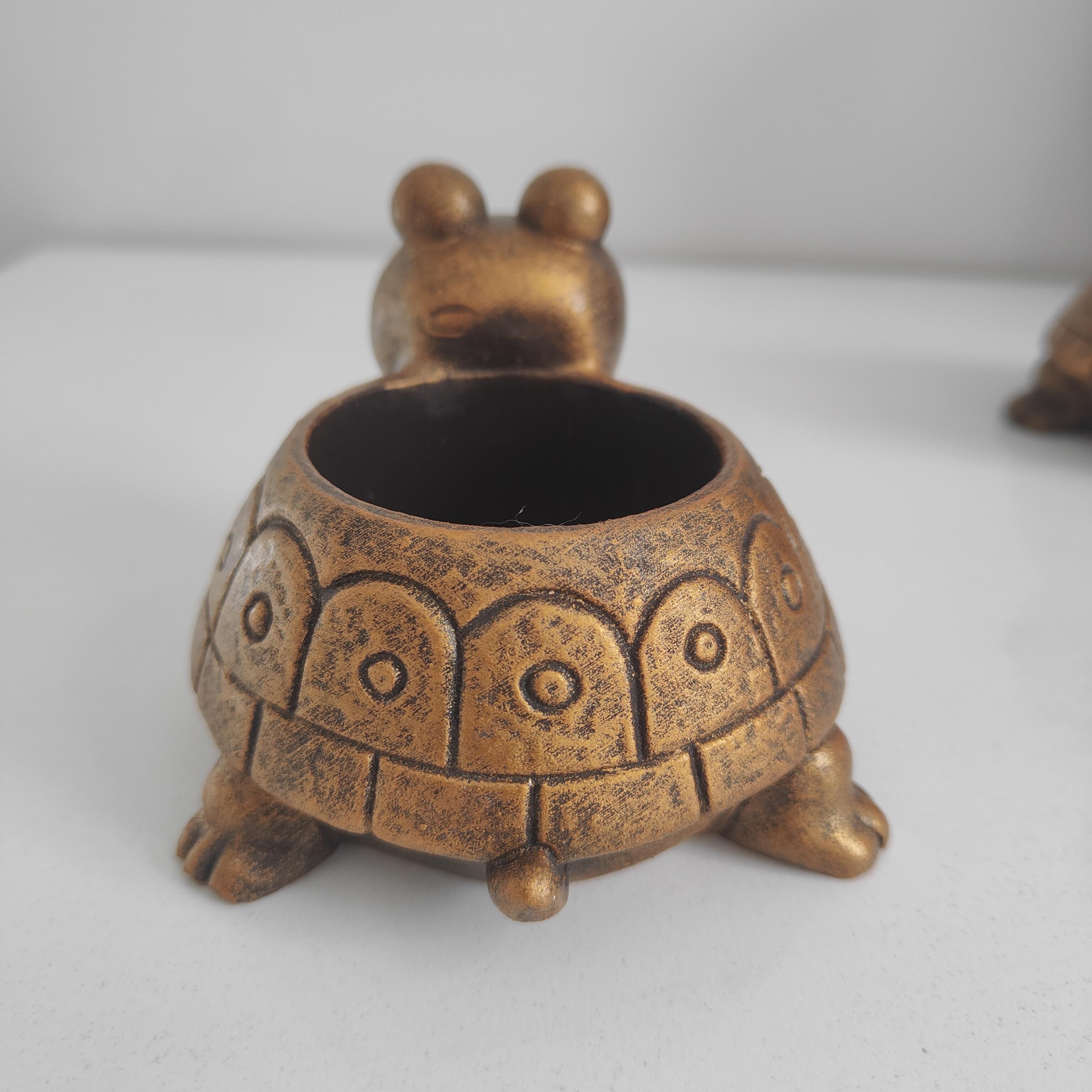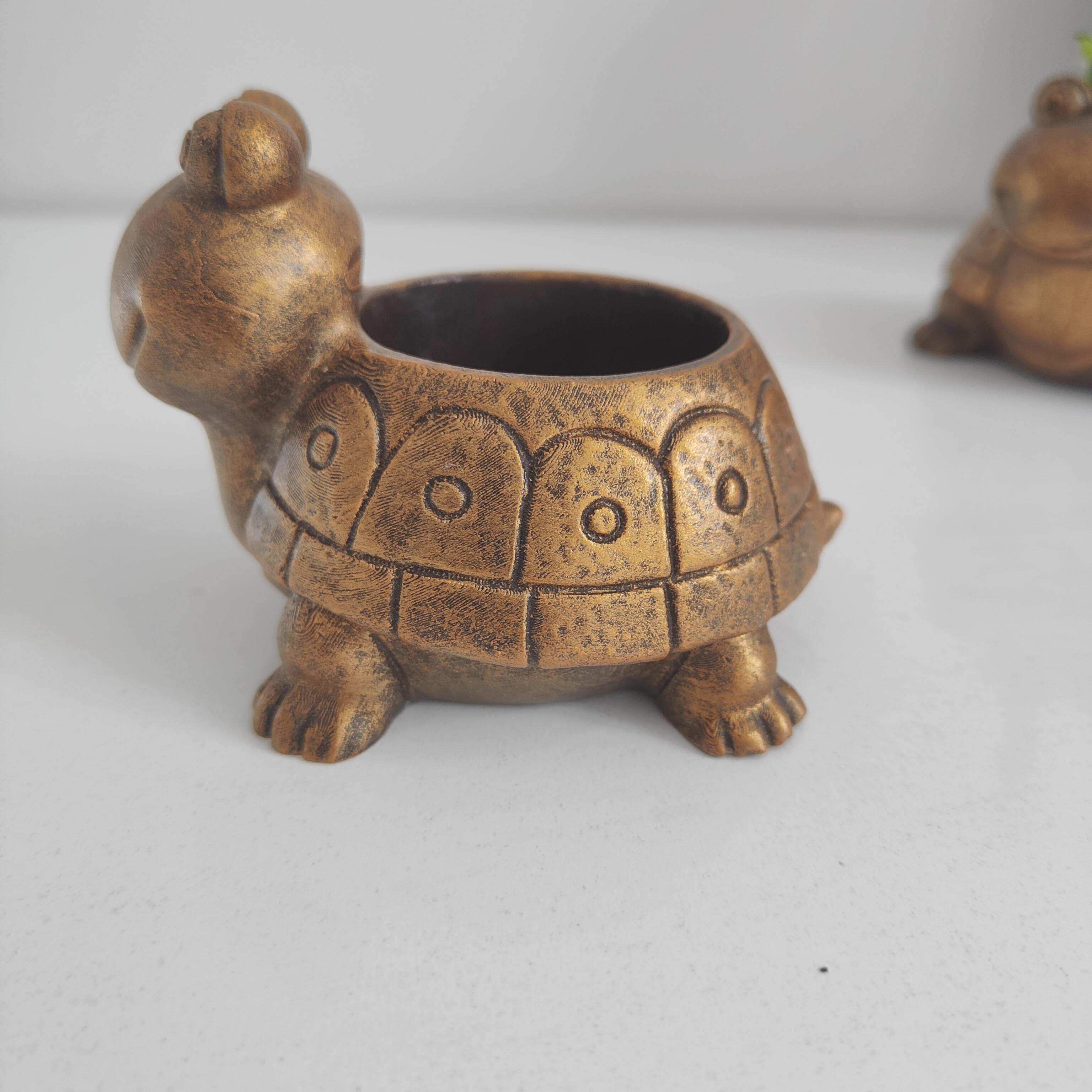 Kaplumbağa figürünün temsil ettiği uzun ömür ve huzur, bu tasarıma anlam katarken, altın eskitme detayları vintage bir şıklık sunar. Küçük sukulentler veya tealight mumlarla kullanarak yaşam alanlarınıza sıcak ve sofistike bir hava katabilirsiniz.
