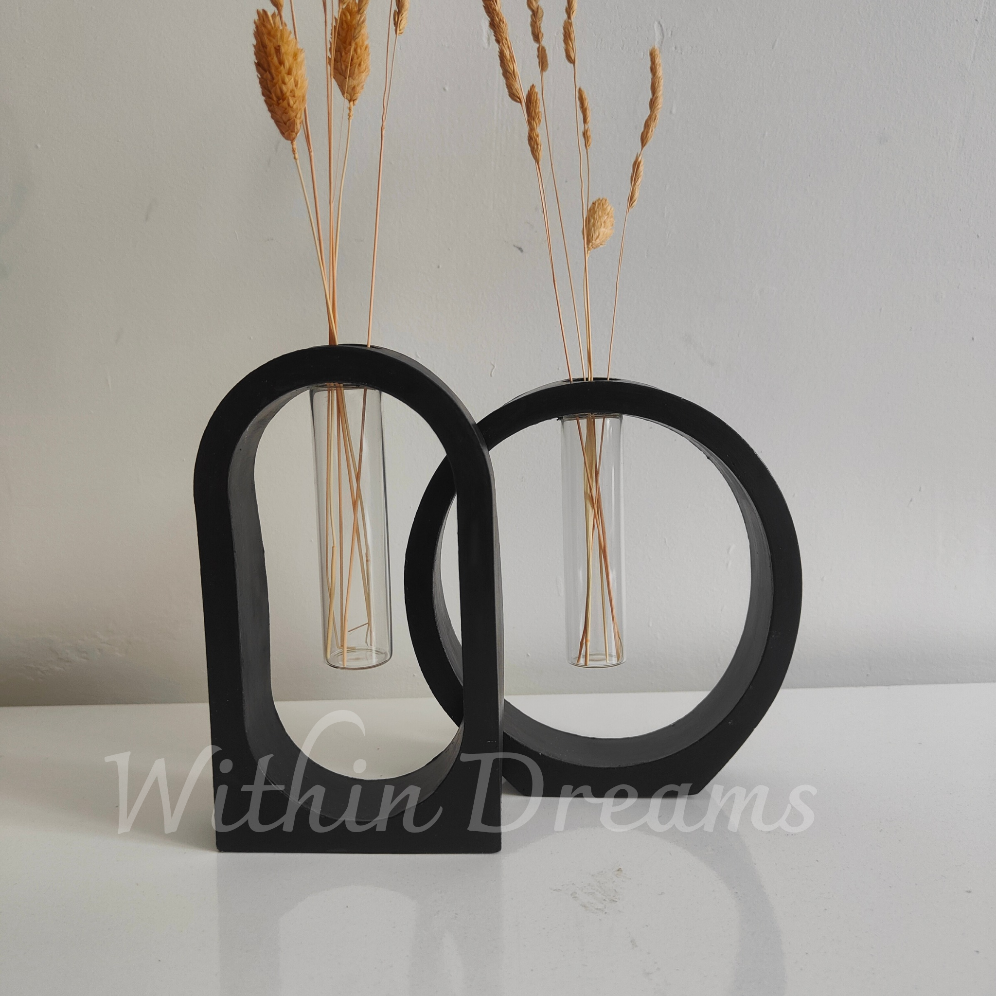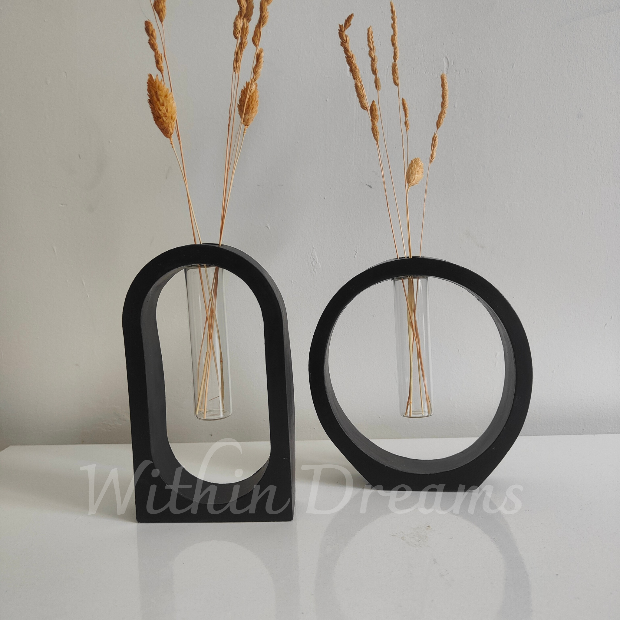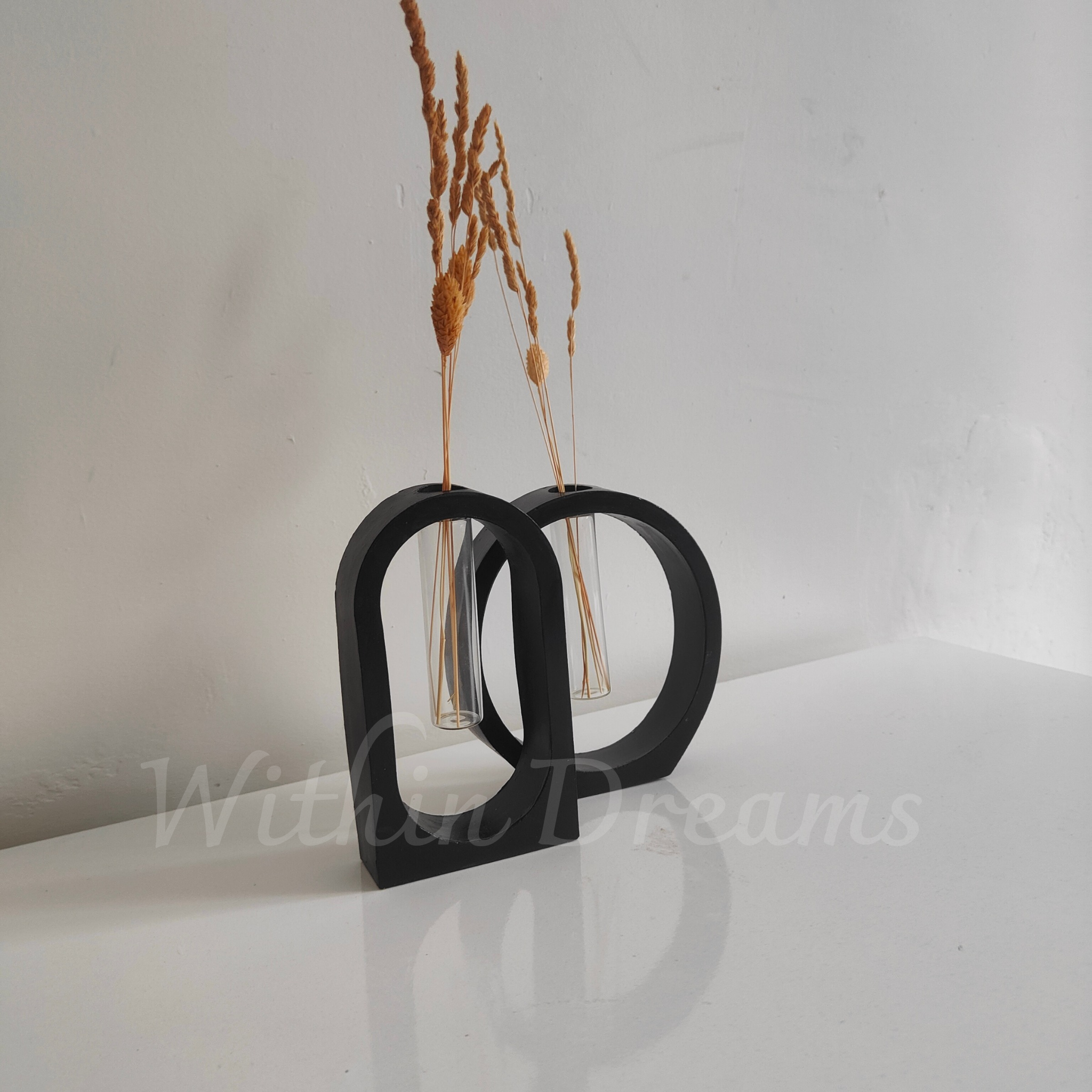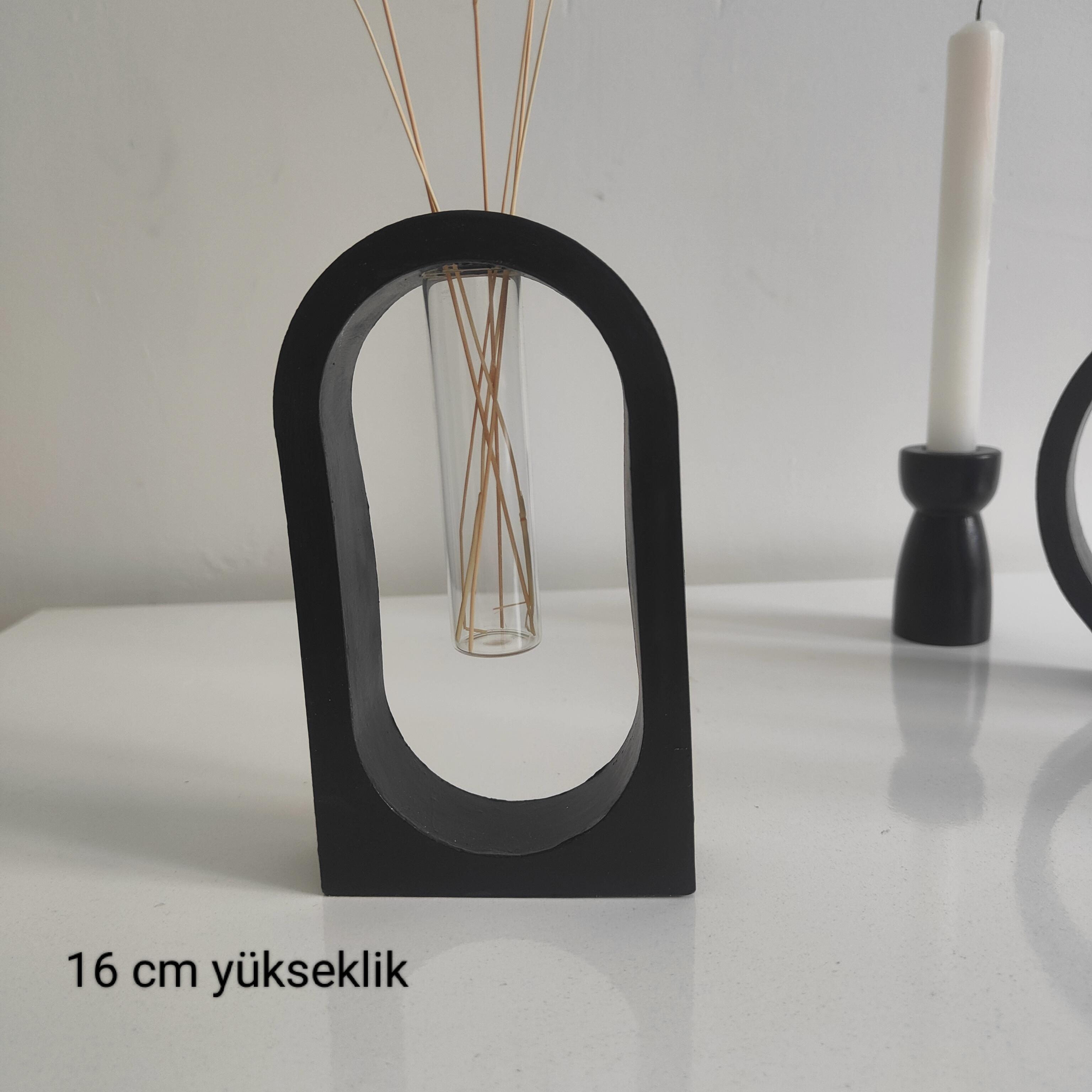 Minimalist ve modern tasarımıyla dikkat çeken bu set, iki adet deney tüplü vazodan oluşmaktadır, Seramik tozundan el emeğiyle üretilmiş ve akrilik boya ile özenle boyanmıştır. İnce ve zarif formu sayesinde çiçeklerinizi şık bir şekilde sergilemenizi sağlarken, Dekorasyonunuza modern ve estetik bir dokunuş eklemek için mükemmel bir seçim!"